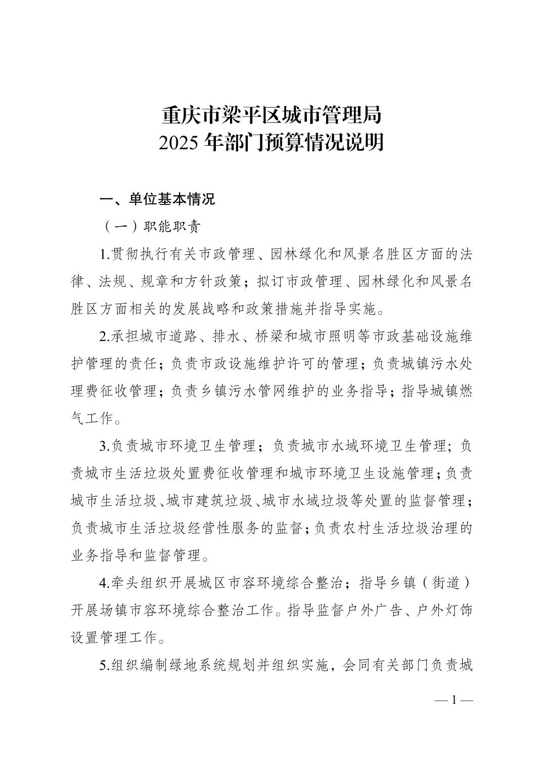 | 標(biāo)題 | 重慶市梁平區(qū)城市管理局2025年部門預(yù)算情況說(shuō)明 |