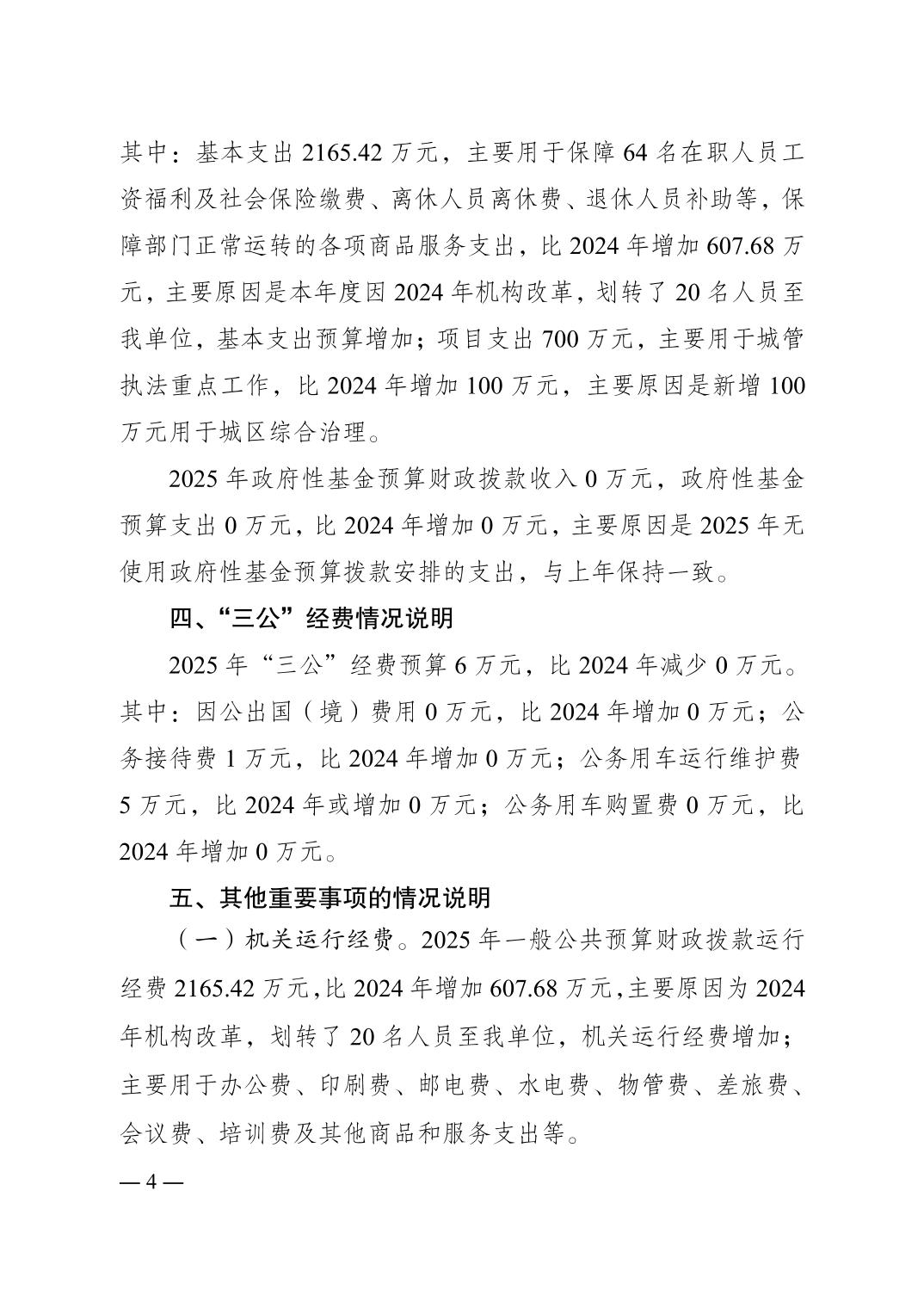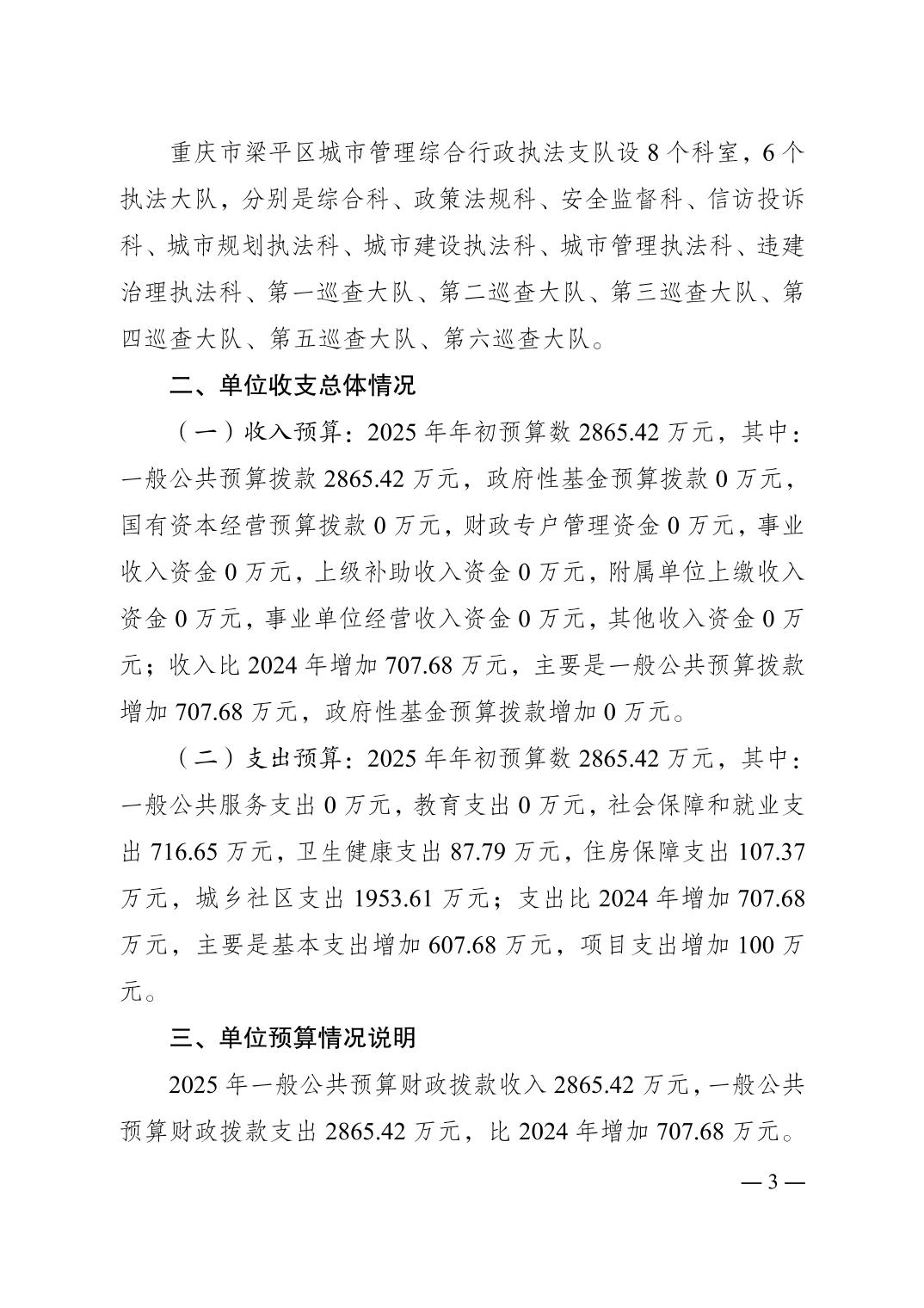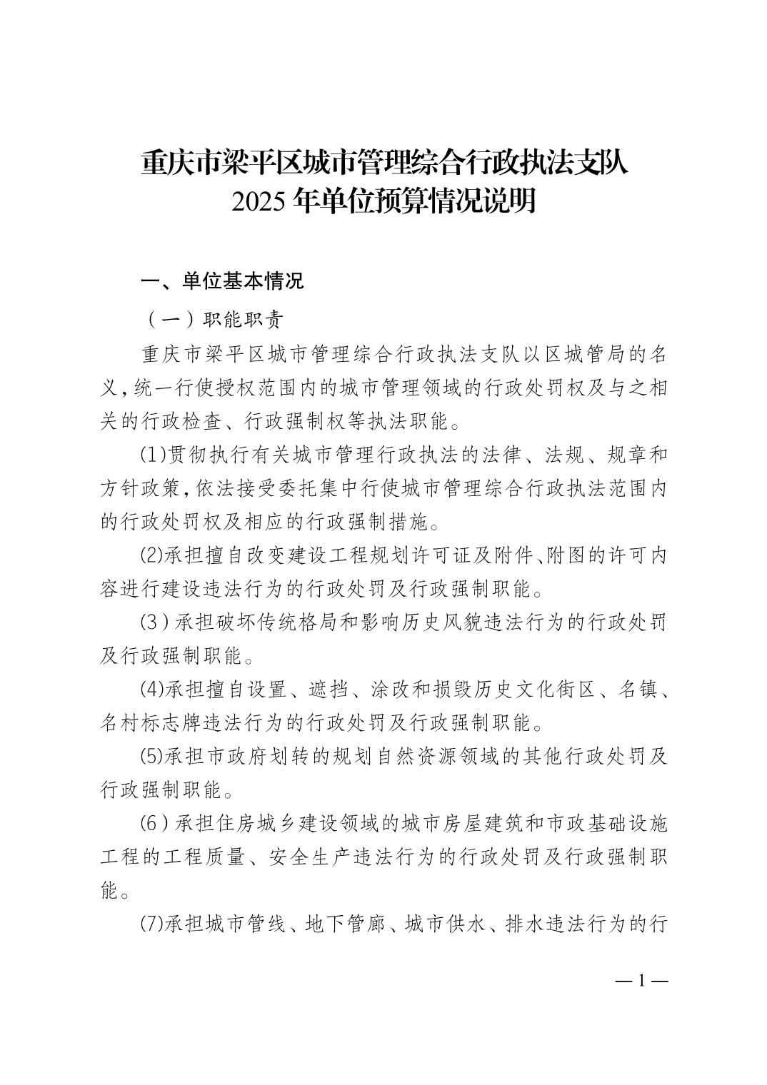 標題 重慶市梁平區城市管理綜合行政執法支隊2025 年單位預算情況說明
