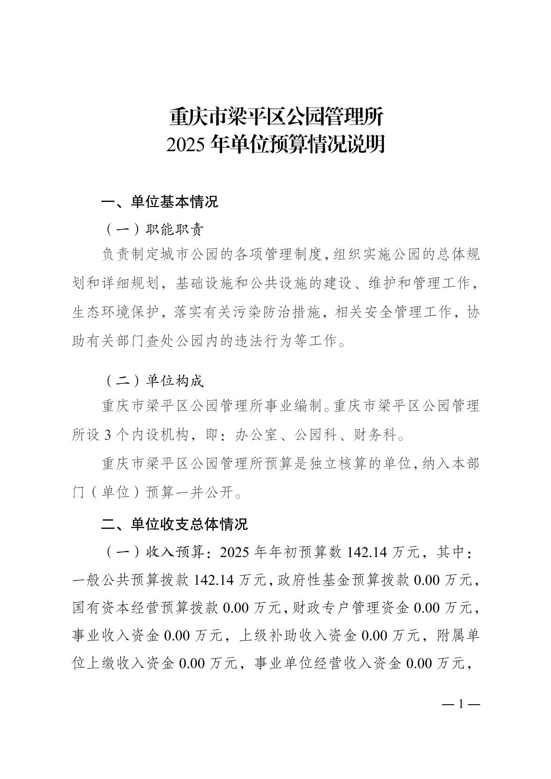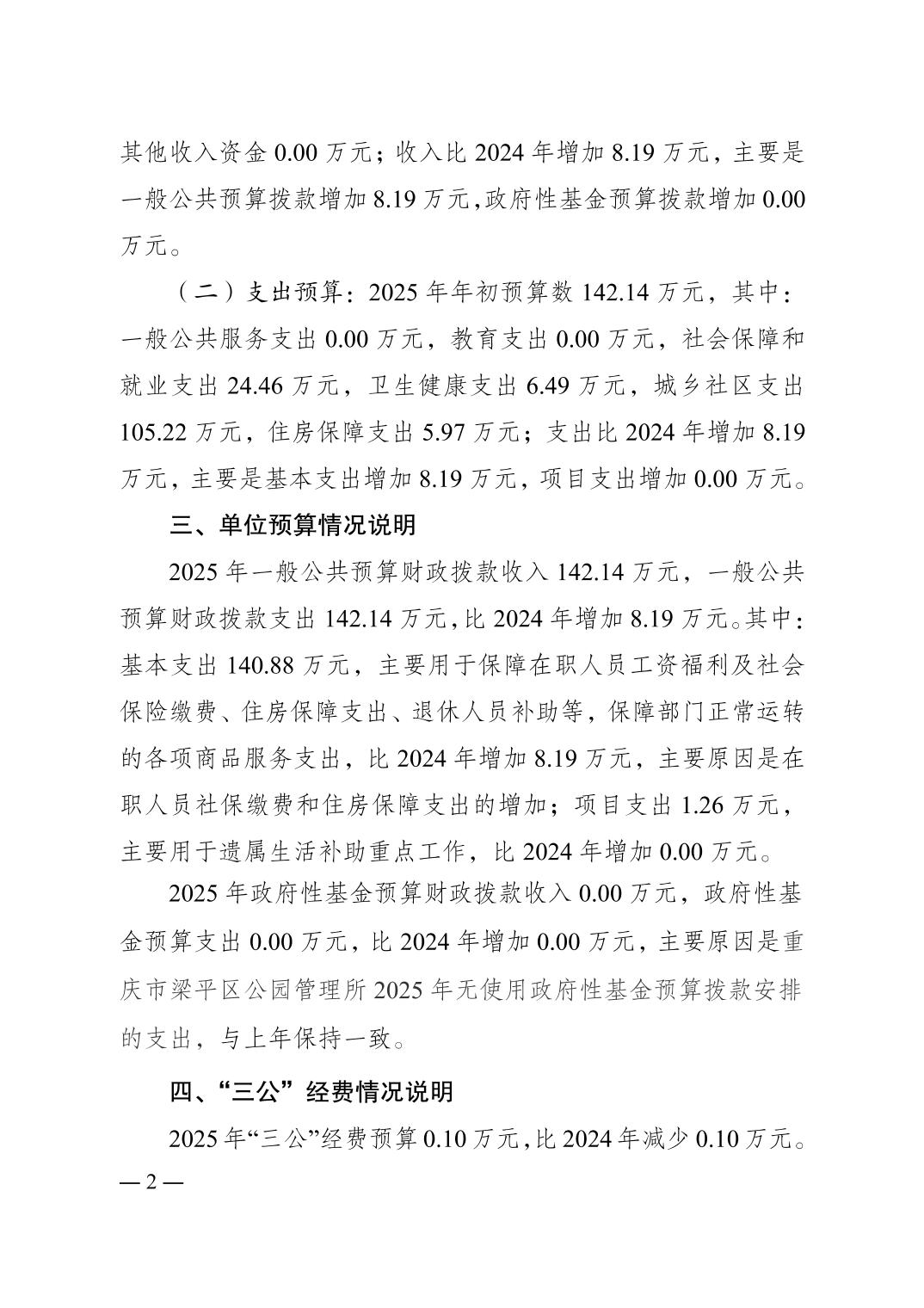 標題 重慶市梁平區公園管理所2025 年單位預算情況說明