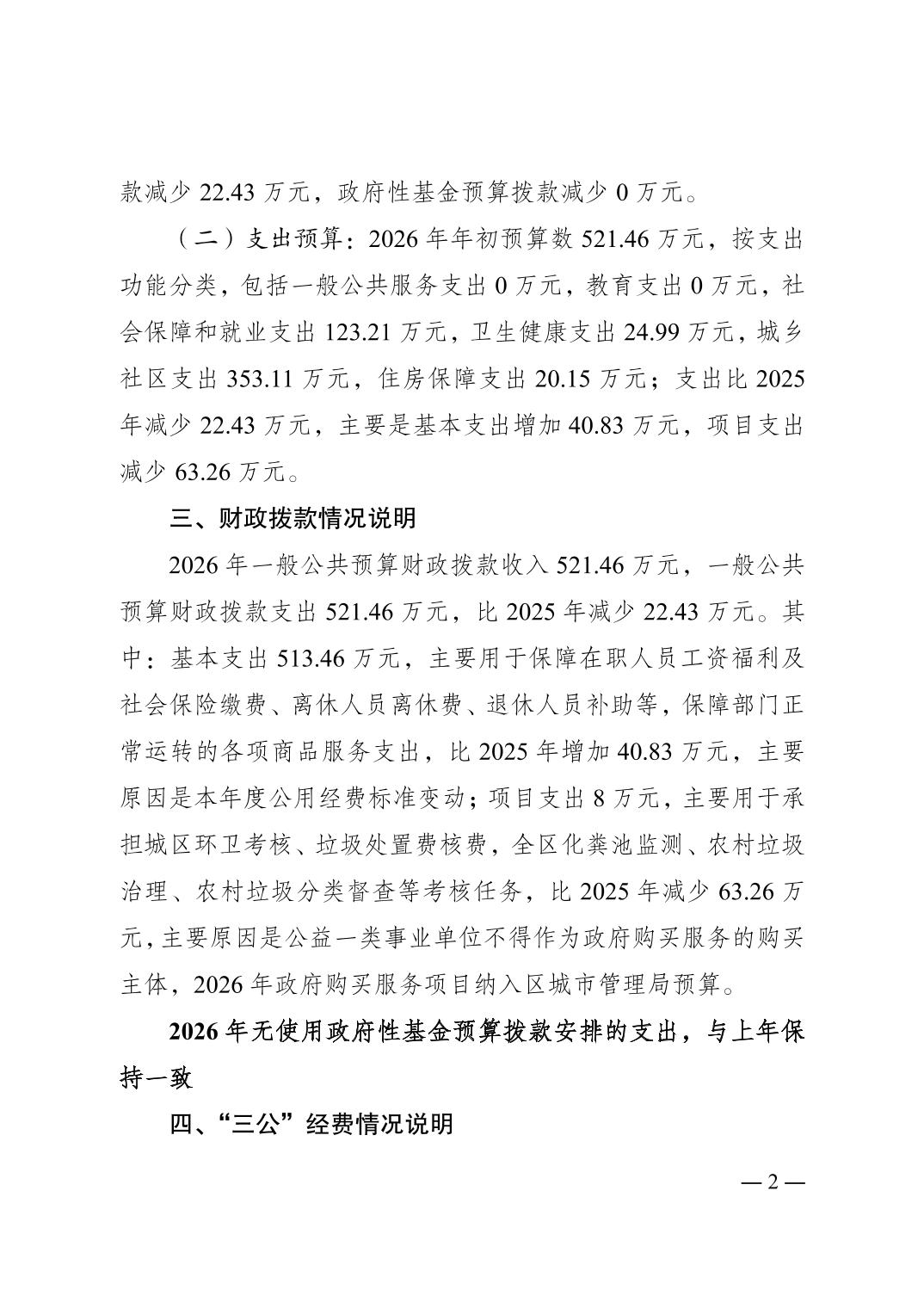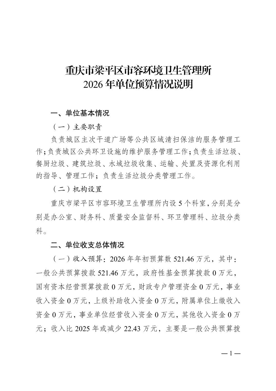 | 標題 | 重慶市梁平區市容環境衛生管理所2026年單位預算情況說明 |