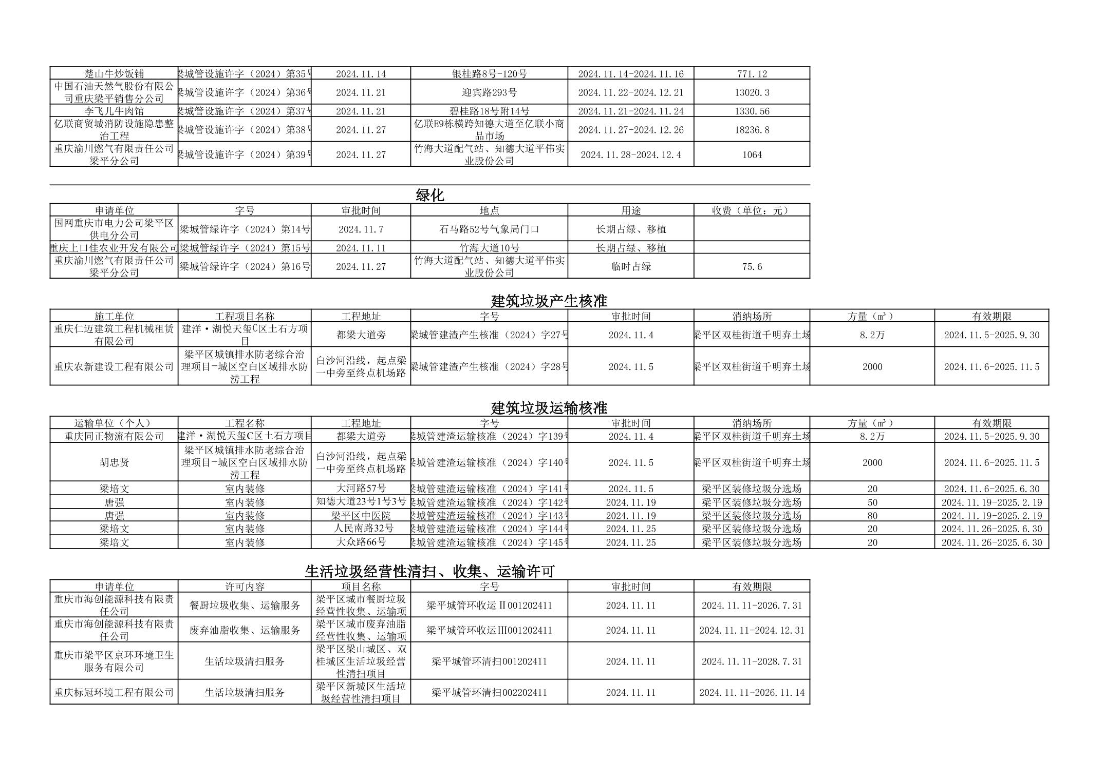 | 標題 | 重慶市梁平區城市管理局2024年行政許可事項第七次公示 |