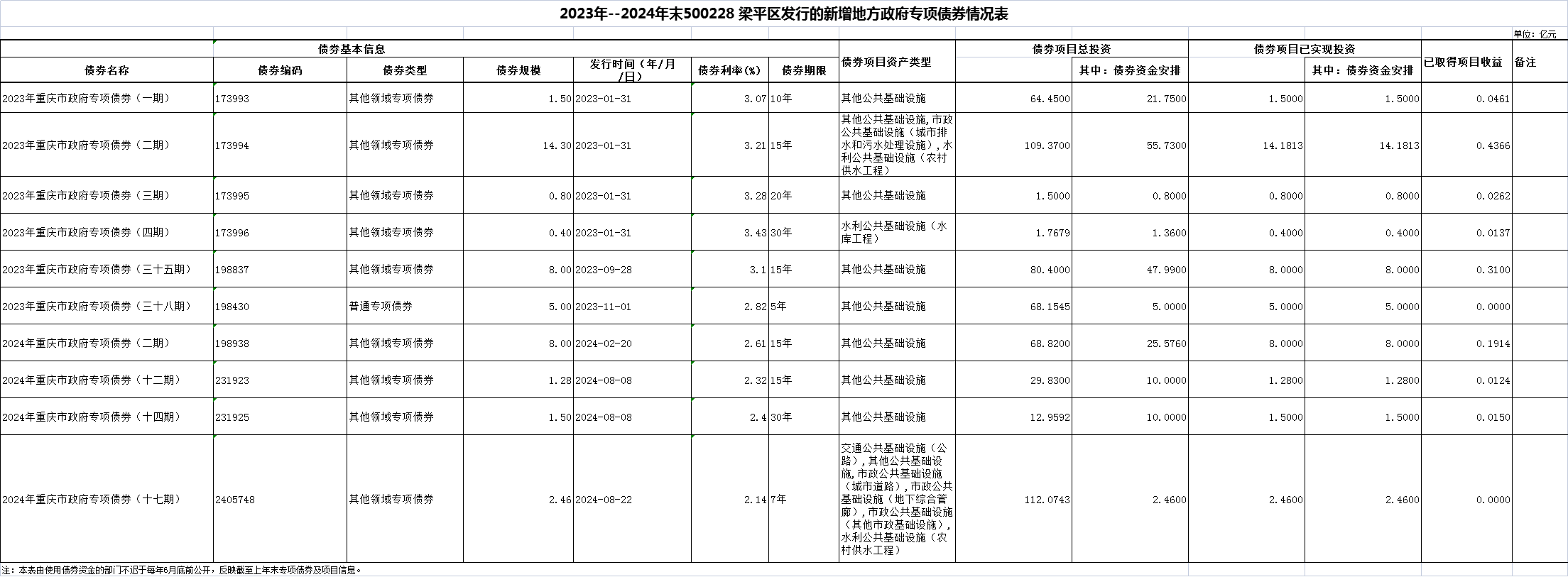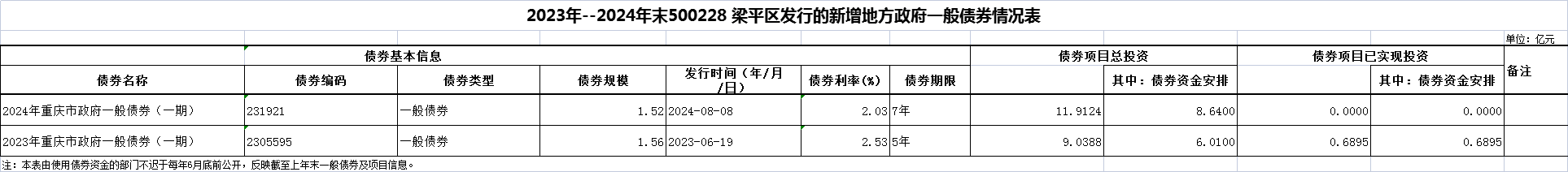 | 標題 | 2023年--2024年年末梁平區發行的新增地方政府債券存續期信息 |