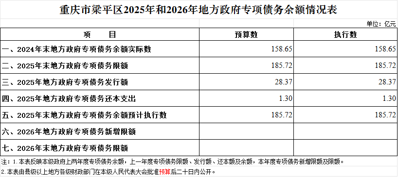 | 標題 | 重慶市梁平區2025年和2026年地方政府專項債務余額情況表 |