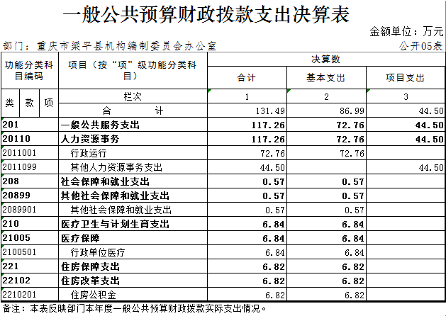 (二)財(cái)政撥款收入支出決算總體情況說明。本部門2016年度財(cái)政撥款收入130.49萬元,較上年決算數(shù)增加35.00萬元,增長(zhǎng)36.64%。主要原因是人員增資,項(xiàng)目經(jīng)費(fèi)增加。較年初預(yù)算數(shù)增加14.95萬元,增長(zhǎng)12.93%。主要原因是人員調(diào)資及年中追加安排困難經(jīng)費(fèi)支出預(yù)算10萬元。本部門2016年度財(cái)政撥款支出131.49萬元,較上年決算數(shù)增加23.84萬元,增長(zhǎng)22.14%。主要原因是人員增資、辦公費(fèi)及項(xiàng)目經(jīng)費(fèi)支出增加等。較年初預(yù)算數(shù)增加14.95萬元,增長(zhǎng)12.82%。主要原因是人員增資及運(yùn)行經(jīng)費(fèi)支出增加。本部門2016年度財(cái)政撥款支出主要用于以下方面:一般公共服務(wù)支出117.26萬元,占89.18%,較年初預(yù)算數(shù)增加14.95萬元,主要原因是人員增資、項(xiàng)目支出增加等;外交支出0.00萬元;國(guó)防支出0.00萬元;公共安全支出0.00萬元;教育支出0.00萬元;科學(xué)技術(shù)支出0.00萬元;文化體育與傳媒支出0.00萬元;社會(huì)保障與就業(yè)支出0.57萬元,占0.43%,較年初預(yù)算數(shù)增加0.00萬元;醫(yī)療衛(wèi)生與計(jì)劃生育支出6.84萬元,占5.20%,較年初預(yù)算數(shù)增加0.00萬元;節(jié)能環(huán)保支出0.00萬元;城鄉(xiāng)社縣支出0.00萬元;農(nóng)林水支出0.00萬元;交通運(yùn)輸支出0.00萬元;資源勘探信息等支出0.00萬元;商業(yè)服務(wù)業(yè)等支出0.00萬元;金融支出0.00萬元;援助其他地縣支出0.00萬元;國(guó)土海洋氣象等支出0.00萬元;住房保障支出6.82萬元,占5.19%,較年初預(yù)算數(shù)增加0.00萬元;糧油儲(chǔ)備物資支出0.00萬元;其他支出0.00萬元,占0.00%,較年初預(yù)算數(shù)增加0.00萬元;債務(wù)還本支出0.00萬元;債務(wù)付息支出0.00萬元。
