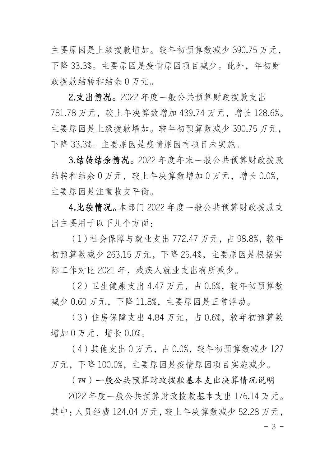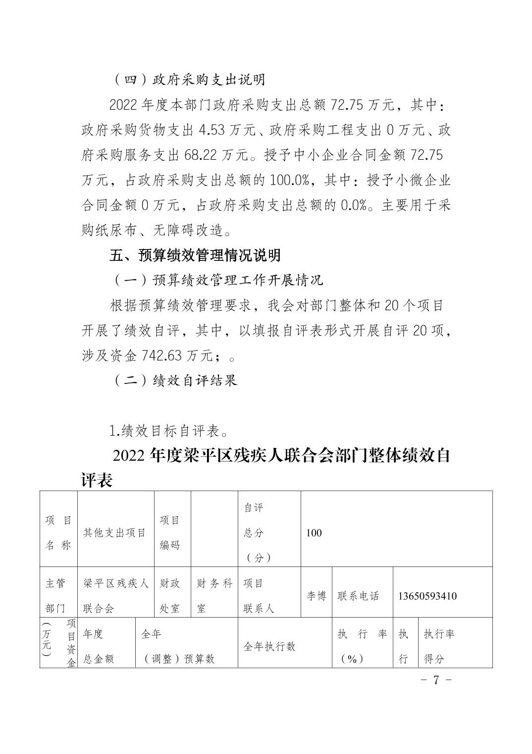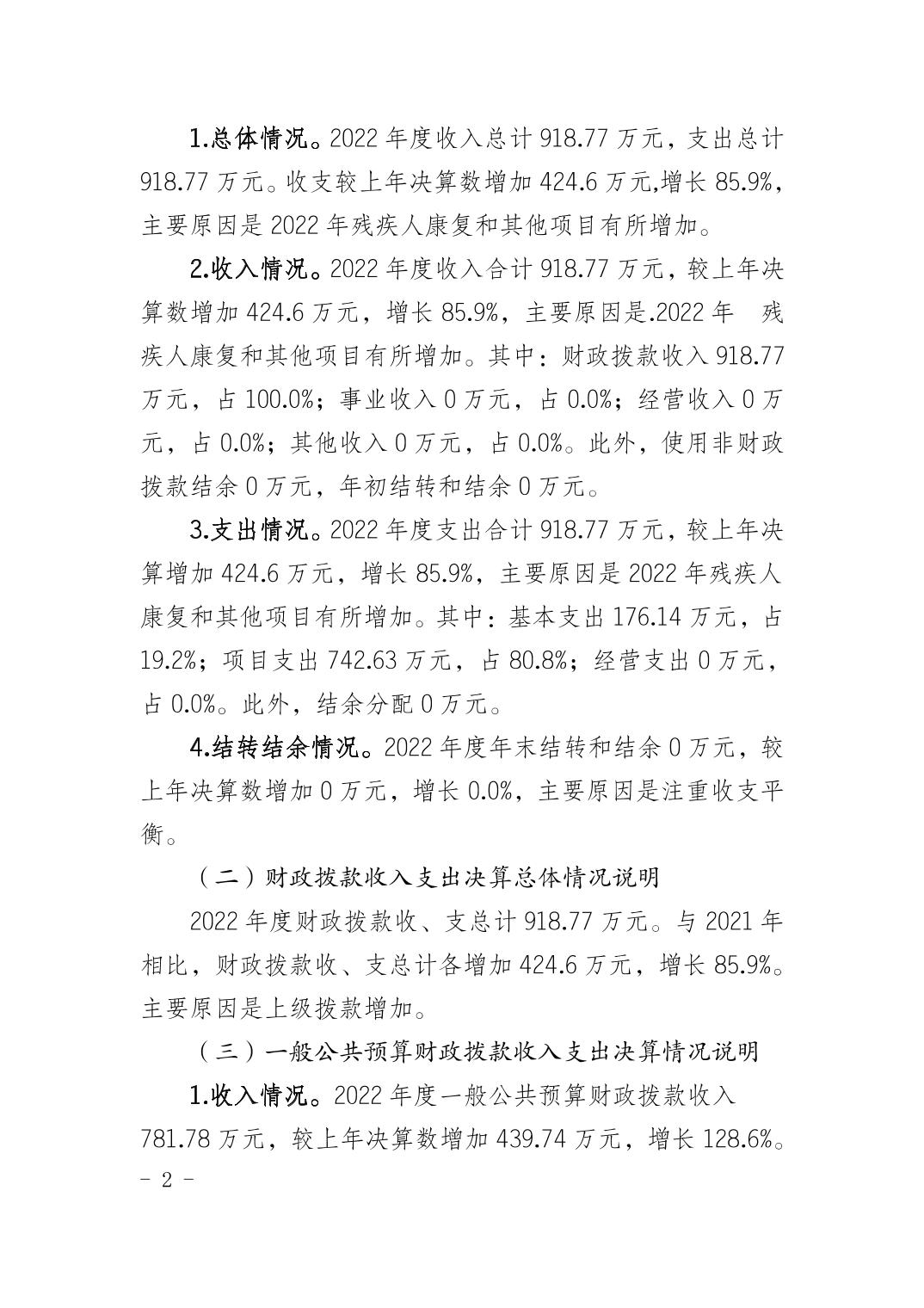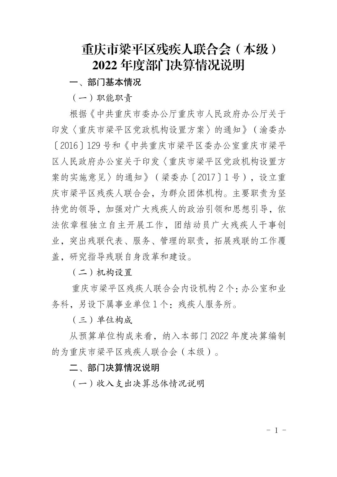 標題 重慶市梁平區殘疾人聯合會(本級)2022年度部門決算情況說明