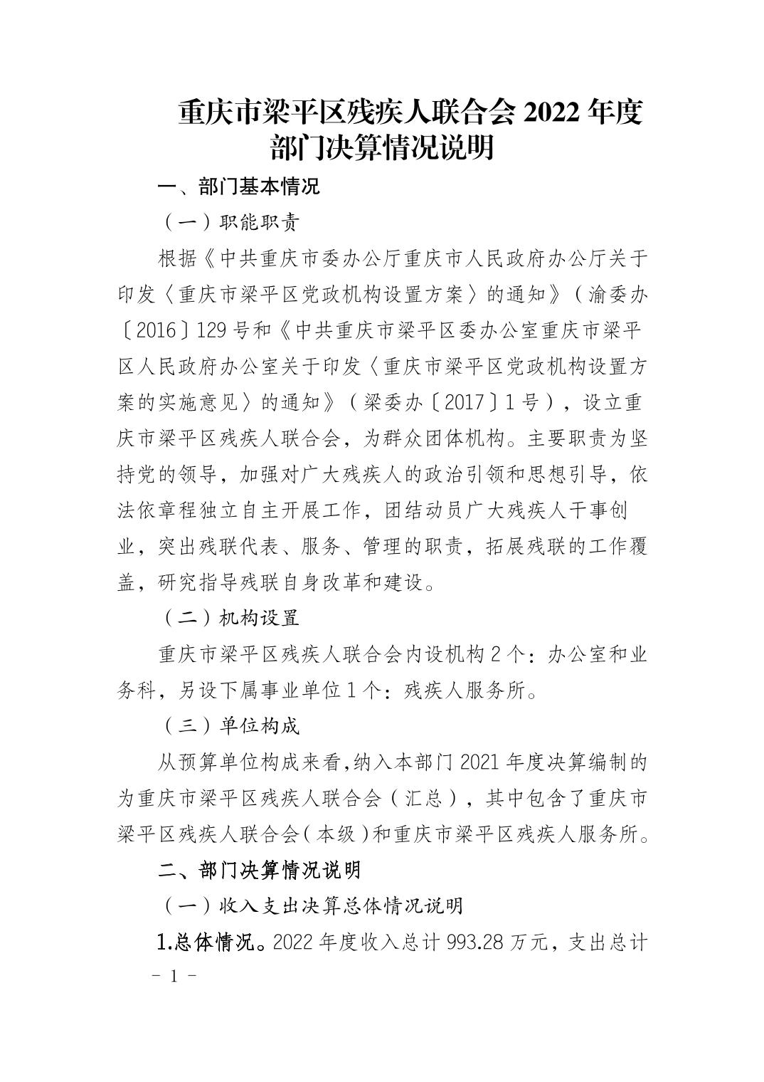 | 標題 | 重慶市梁平區殘疾人聯合會2022年度部門決算情況說明 |