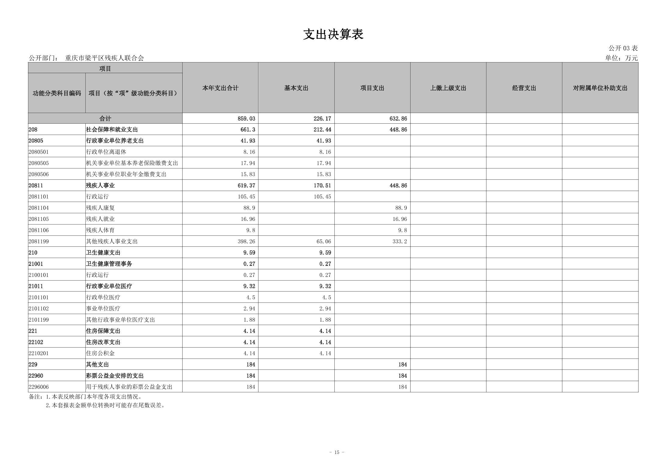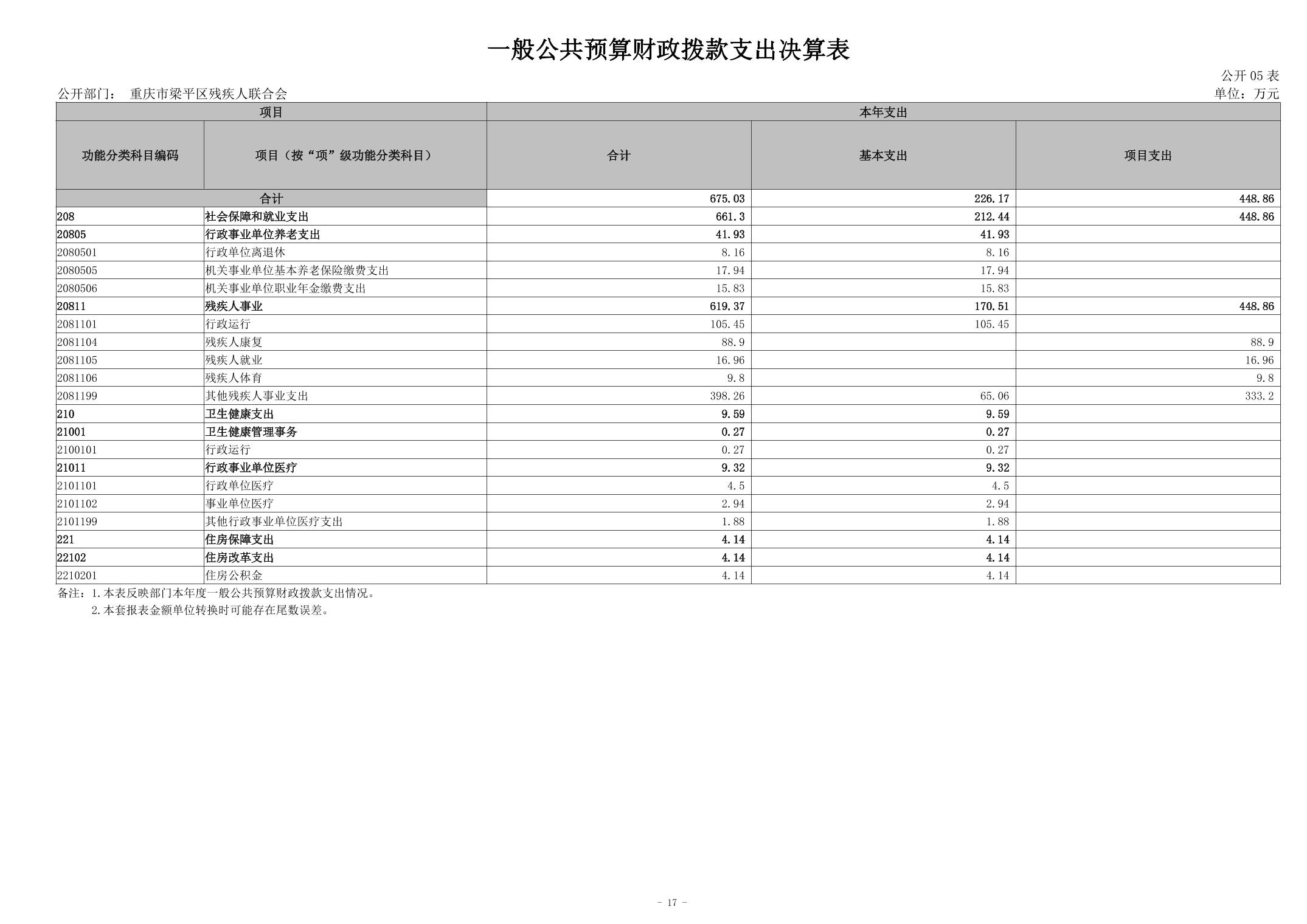 標題 重慶市梁平區殘疾人聯合會2023年度決算公開說明