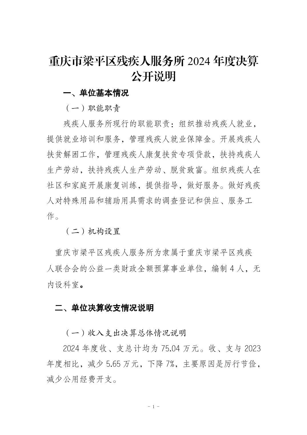 | 標(biāo)題 | 重慶市梁平區(qū)殘疾人服務(wù)所2024年度決算公開說明 |