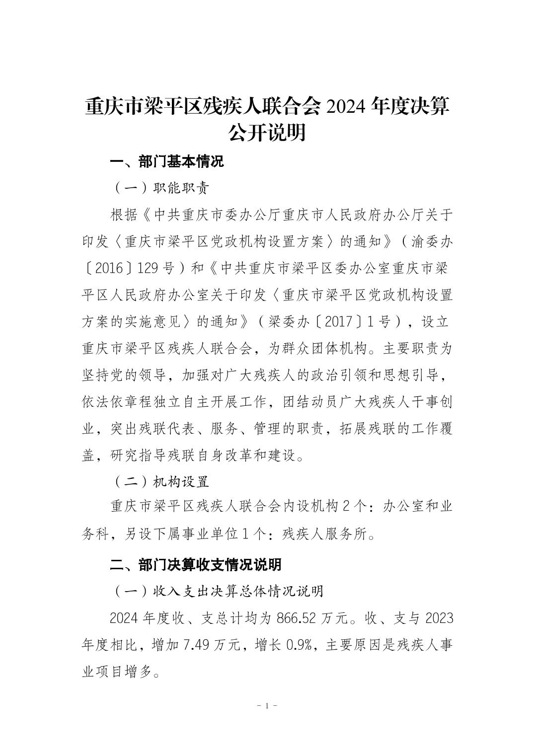 標(biāo)題 重慶市梁平區(qū)殘疾人聯(lián)合會2024年度決算公開說明