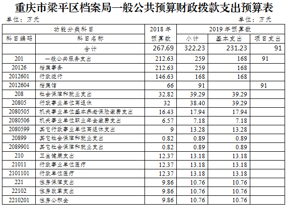 | 標(biāo)題 | 重慶市梁平區(qū)檔案局2019年部門預(yù)算情況說明 | ||