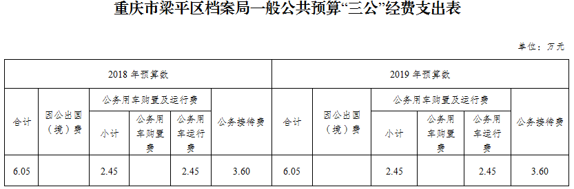 2019年“三公”經(jīng)費預(yù)算6.05萬元,比2018年減少0萬元。其中:因公出國(境)費用0 萬元,比2018年減少0萬元,主要原因是沒有此項工作安排;公務(wù)接待費3.60萬元,比2018年減少0萬元,主要原因是嚴(yán)格控制接待標(biāo)準(zhǔn);公務(wù)用車運行維護(hù)費 2.45 萬元,比2018年減少0萬元,主要原因是嚴(yán)格控制公務(wù)用車;公務(wù)用車購置費0萬元,比2018年減少0萬元;主要原因是保留原有車輛。