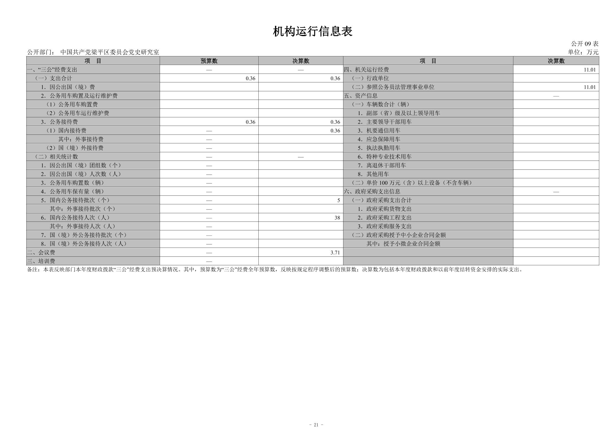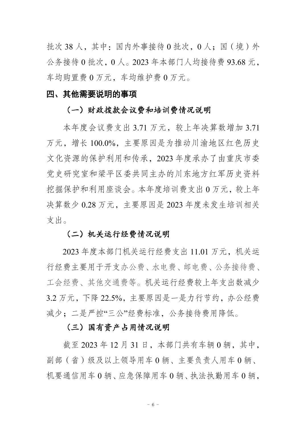 | 標題 | 中國共產黨梁平區委員會黨史研究室 2023年度決算公開說明 |
