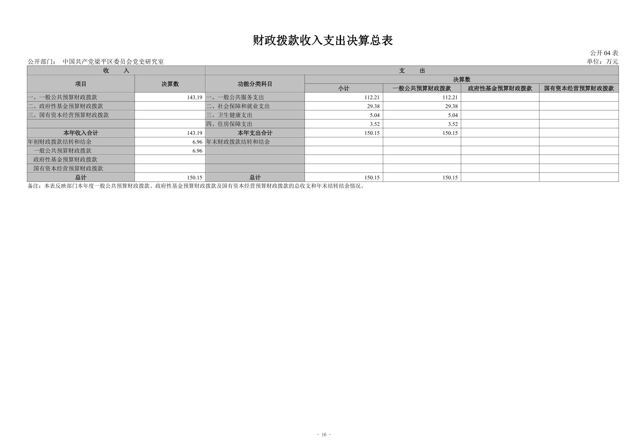| 標題 | 中國共產黨梁平區委員會黨史研究室 2023年度決算公開說明 | ||