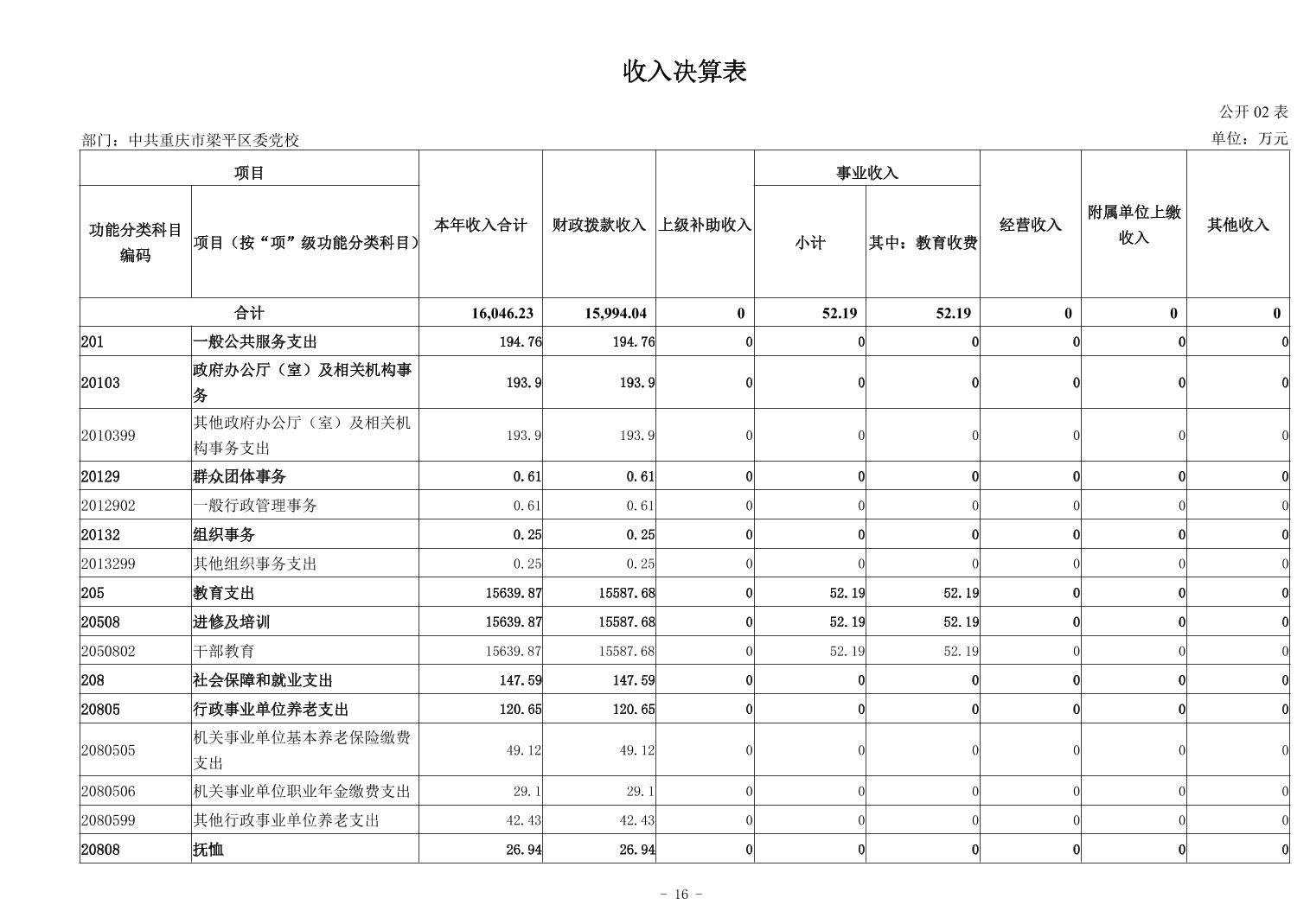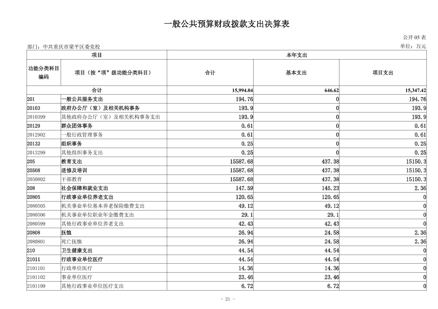 | 標題 | 中共重慶市梁平區委黨校2024年度決算公開說明 |