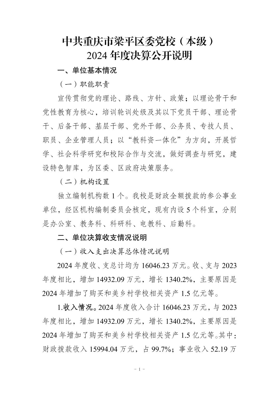 | 標(biāo)題 | 中共重慶市梁平區(qū)委黨校(本級)2024年度決算公開說明 | ||