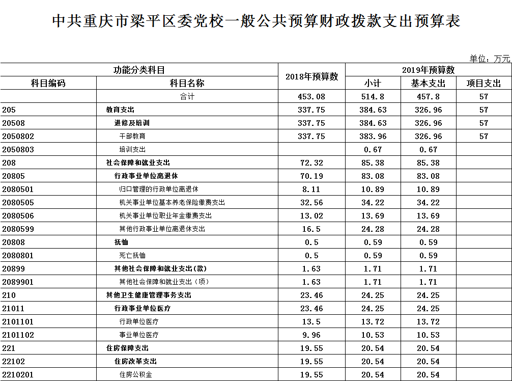 標題 中共重慶市梁平區委黨校2019年部門預算情況說明