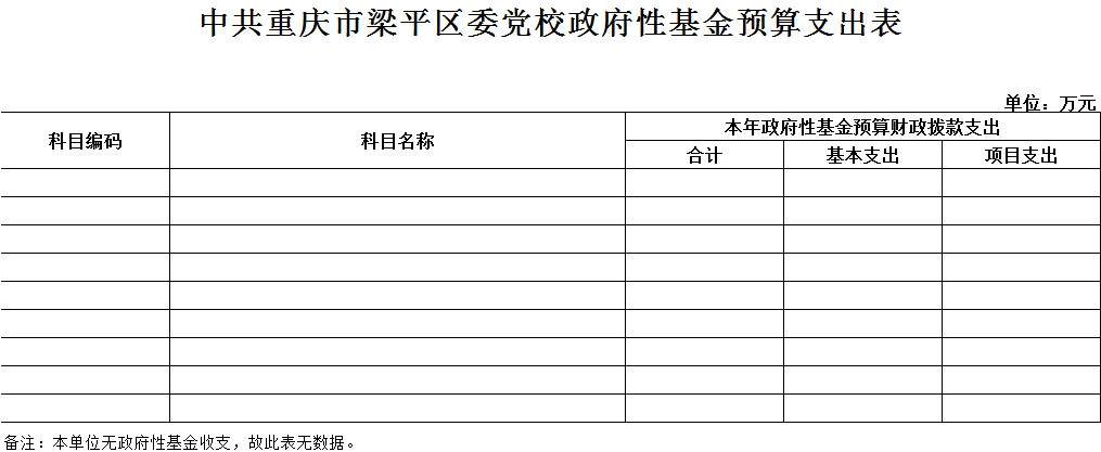 中共重慶市梁平區委黨校2019年未使用政府性基金預算撥款安排的支出。
