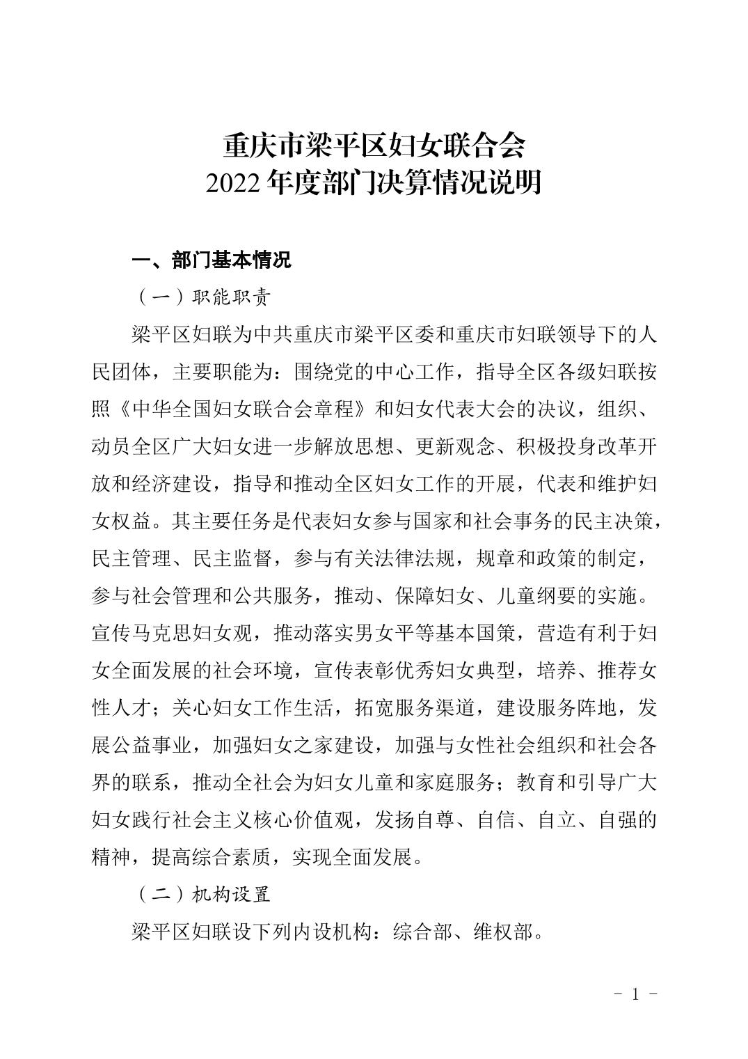 | 標題 | 重慶市梁平區婦女聯合會2022年度部門決算情況說明 |