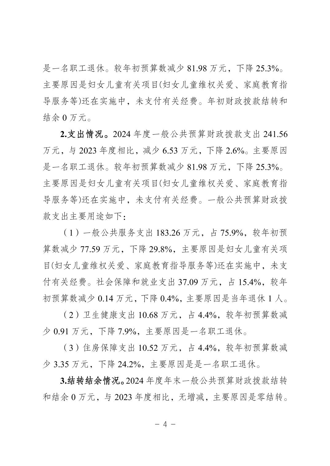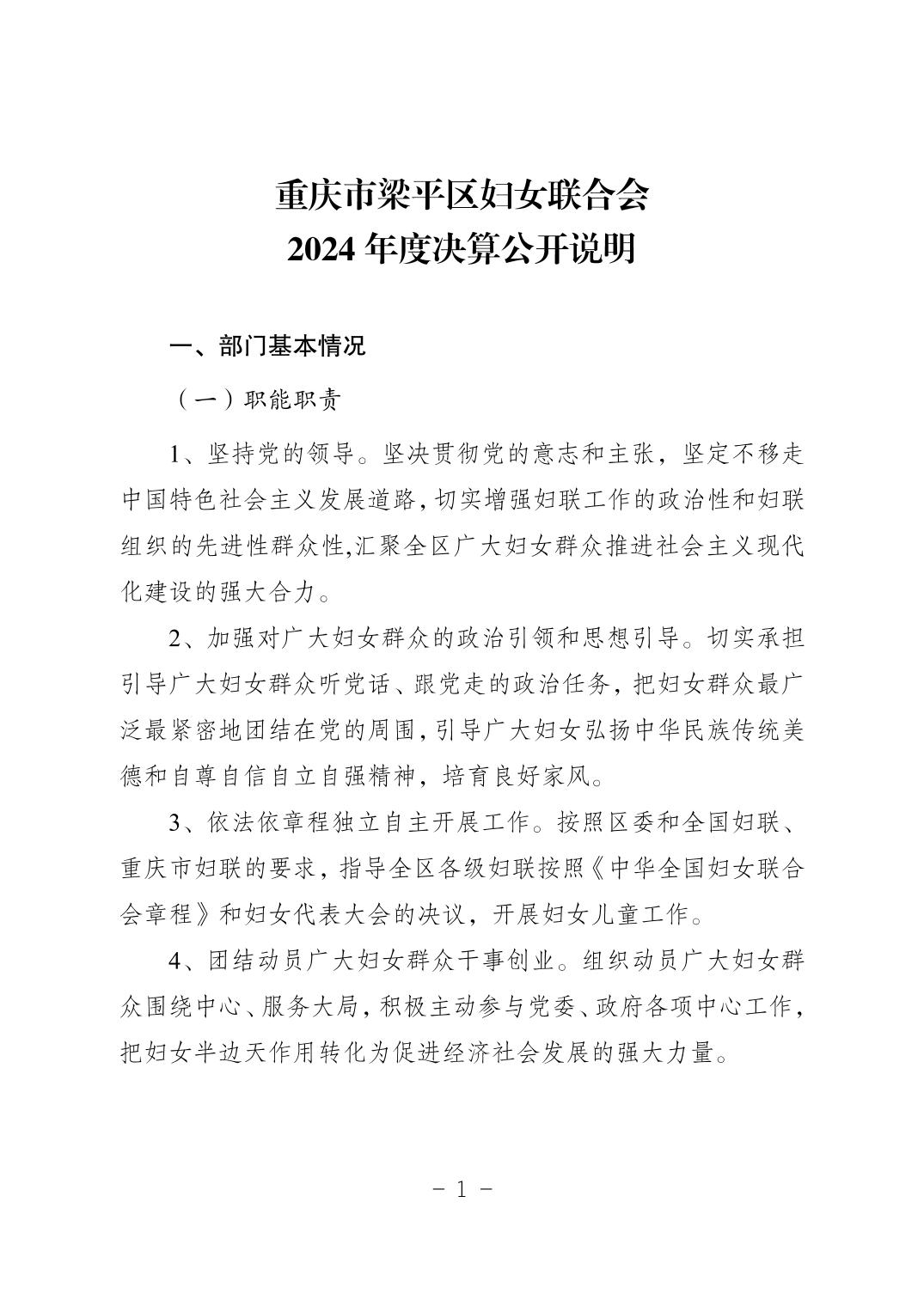 | 標(biāo)題 | 重慶市梁平區(qū)婦女聯(lián)合會(huì) 2024 年度決算公開(kāi)說(shuō)明 |