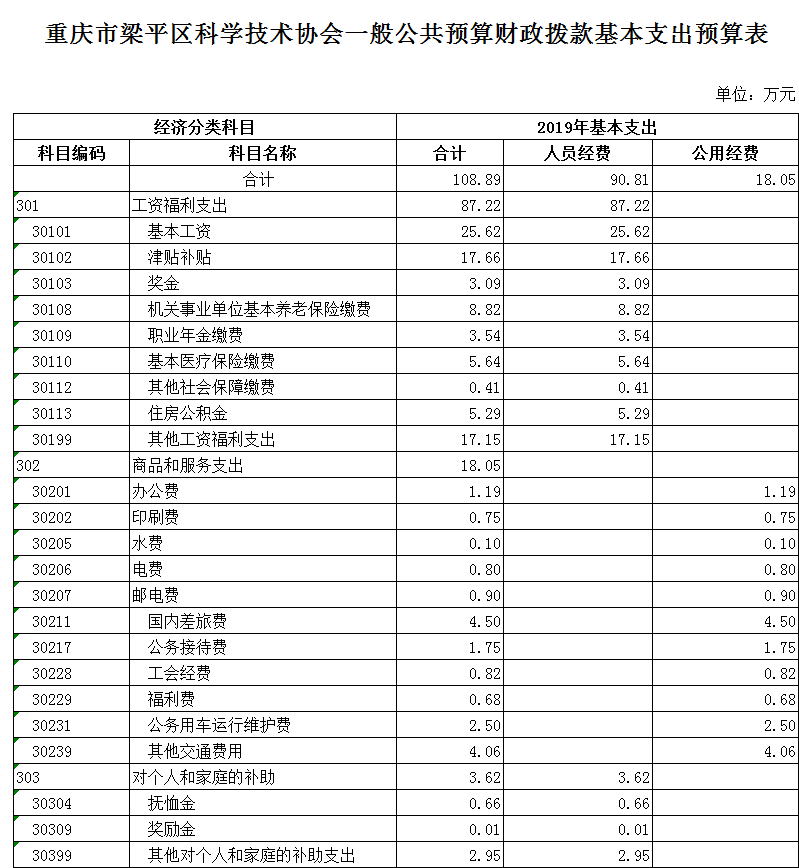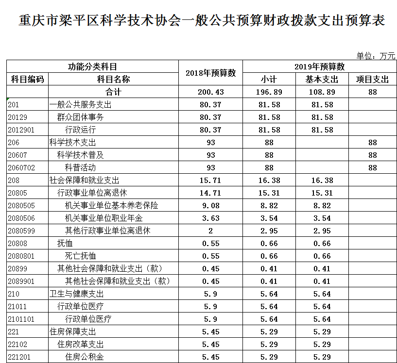 標題 重慶市梁平區科學技術協會2019年部門預算情況說明
