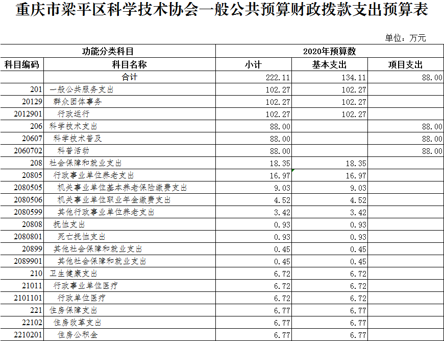 | 標(biāo)題 | 重慶市梁平區(qū)科學(xué)技術(shù)協(xié)會(huì)2020年部門預(yù)算情況說明 | ||