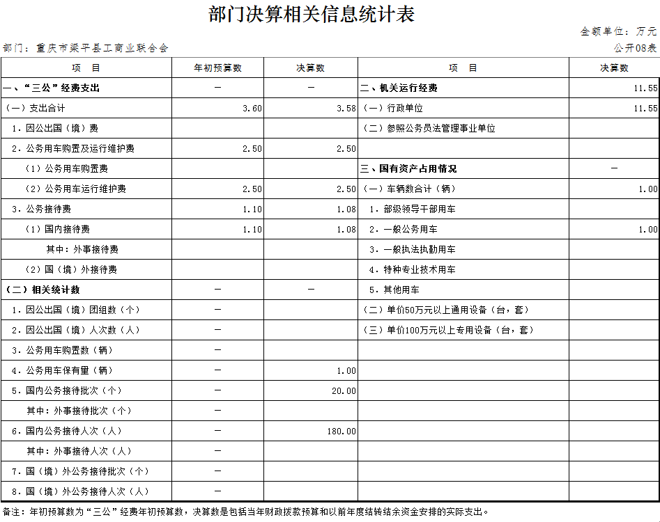 (八)“三公”經(jīng)費(fèi):指用一般公共預(yù)算財(cái)政撥款安排的因公出國(境)費(fèi)、公務(wù)用車購置及運(yùn)行維護(hù)費(fèi)、公務(wù)接待費(fèi)。其中,因公出國(境)費(fèi)反映單位公務(wù)出國(境)的國際旅費(fèi)、國外城市間交通費(fèi)、住宿費(fèi)、伙食費(fèi)、培訓(xùn)費(fèi)、公雜費(fèi)等支出;公務(wù)用車購置費(fèi)反映單位公務(wù)用車購置支出(含車輛購置稅);公務(wù)用車運(yùn)行維護(hù)費(fèi)反映單位按規(guī)定保留的公務(wù)用車燃料費(fèi)、維修費(fèi)、過路過橋費(fèi)、保險(xiǎn)費(fèi)、安全獎(jiǎng)勵(lì)費(fèi)用等支出;公務(wù)接待費(fèi)反映單位按規(guī)定開支的各類公務(wù)接待(含外賓接待)支出。