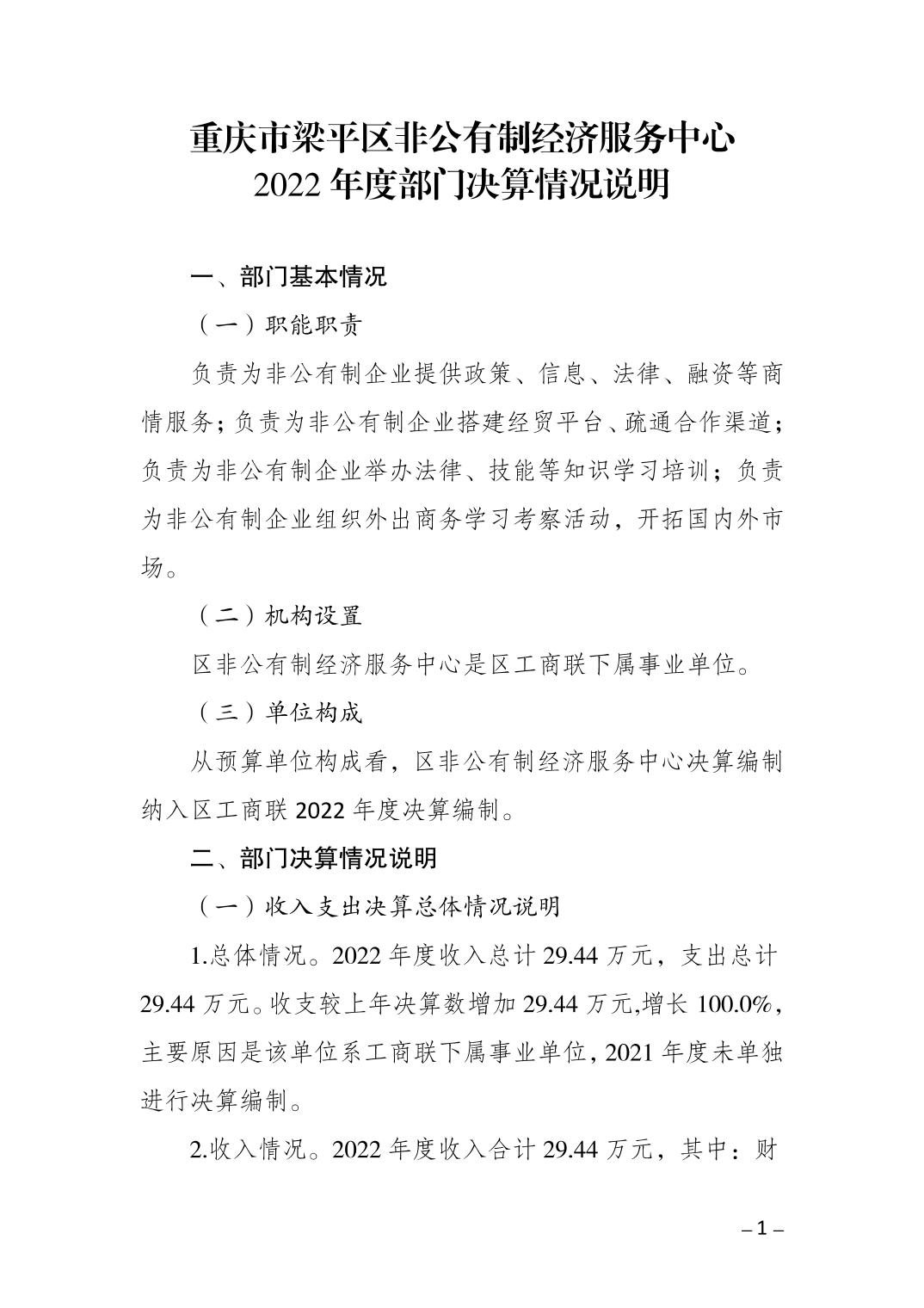 標題 重慶市梁平區非公有制經濟服務中心2022年度部門決算情況說明