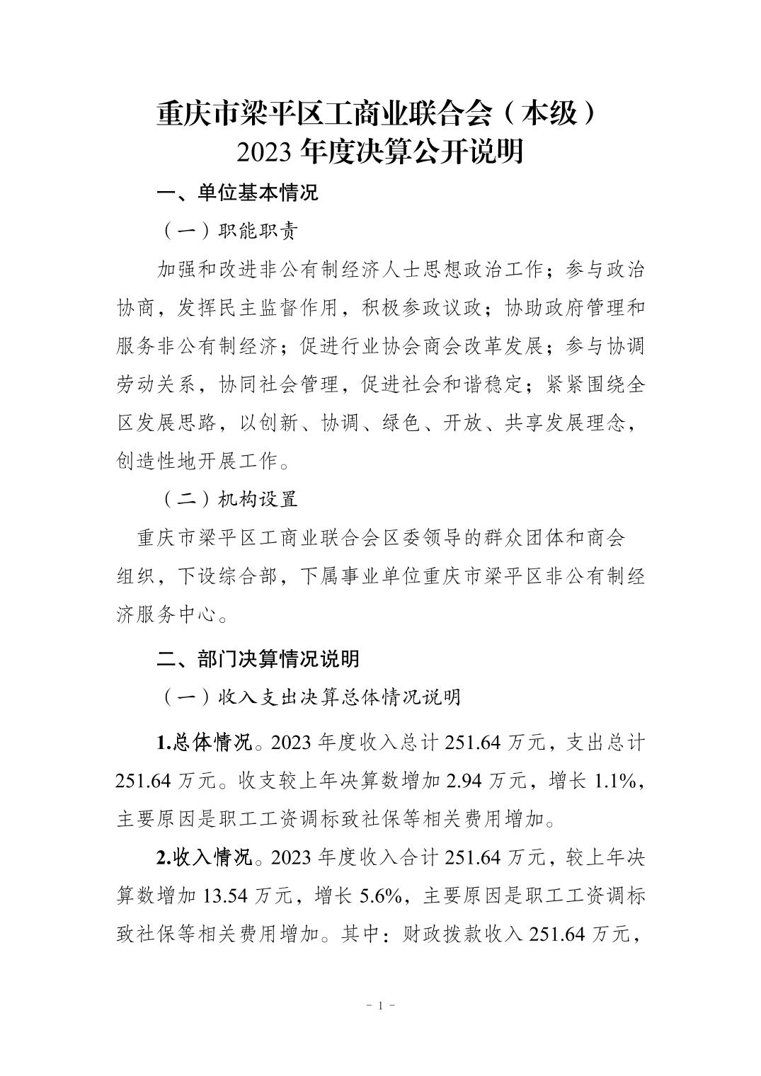 | 標題 | 重慶市梁平區(qū)工商業(yè)聯(lián)合會(本級)2023年度單位決算情況說明 |