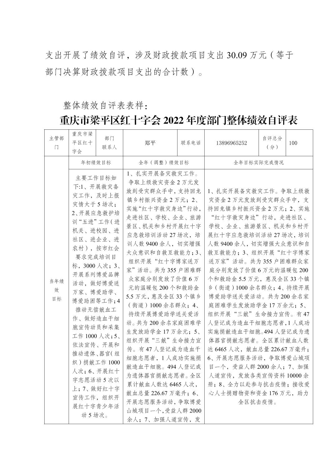 | 標題 | 重慶市梁平區紅十字會2022度部門決算情況說明 |