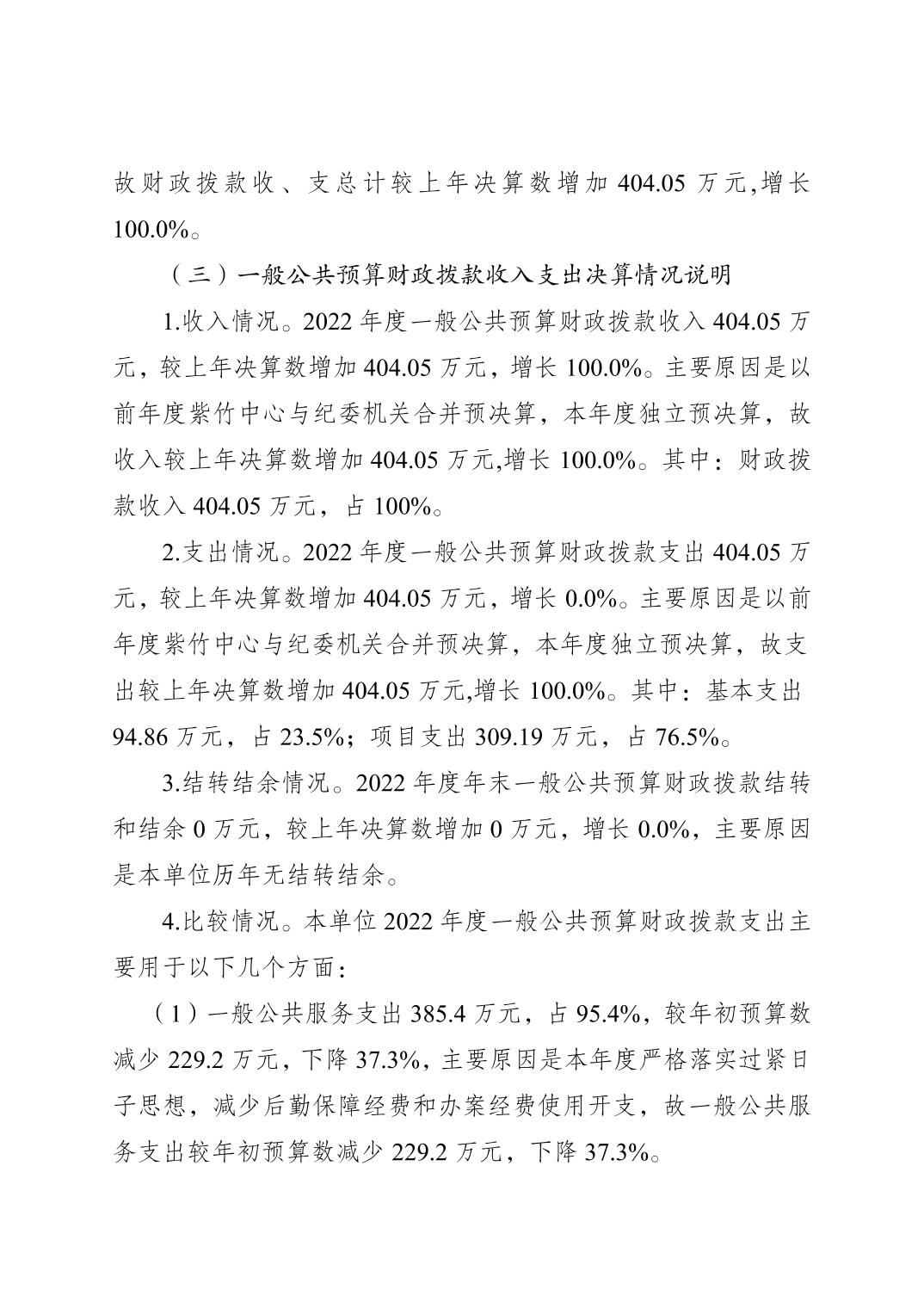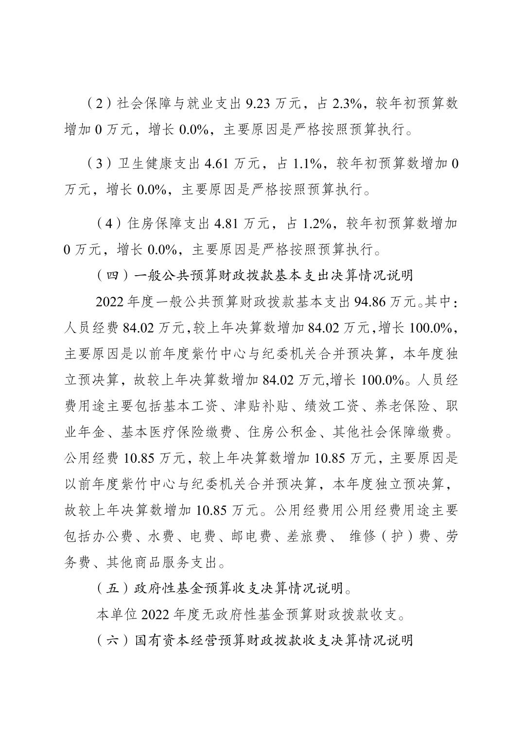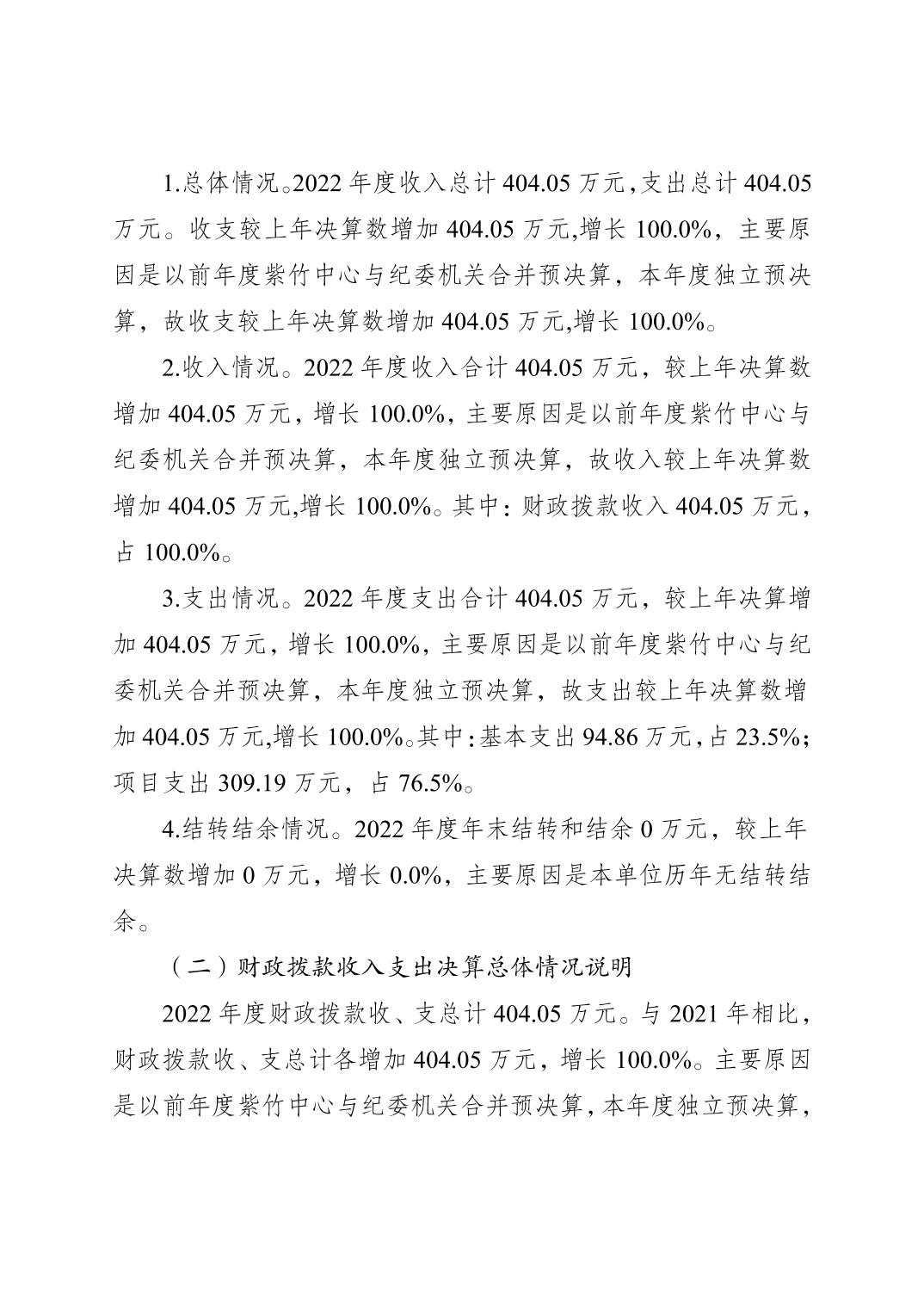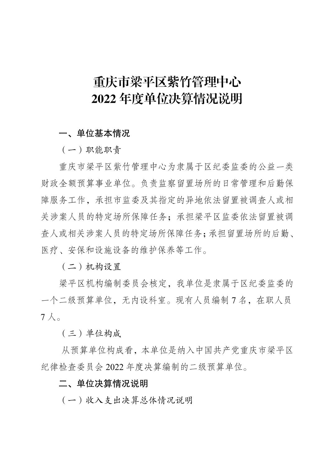 | 標題 | 重慶市梁平區紫竹管理中心2022年度單位決算情況說明 |