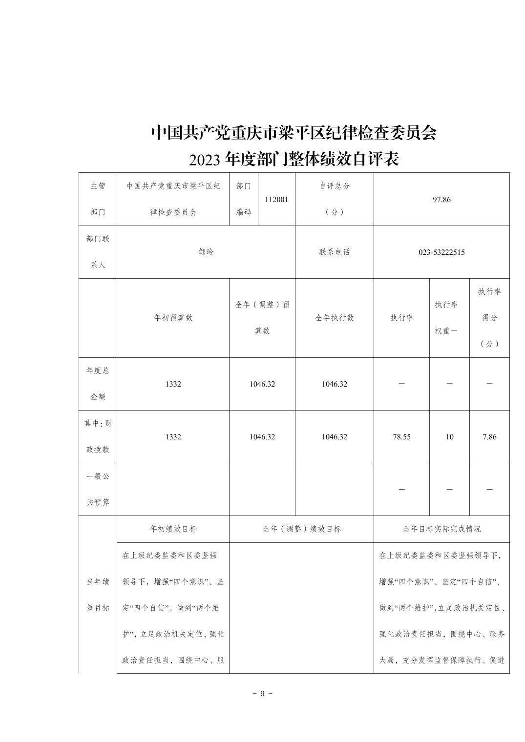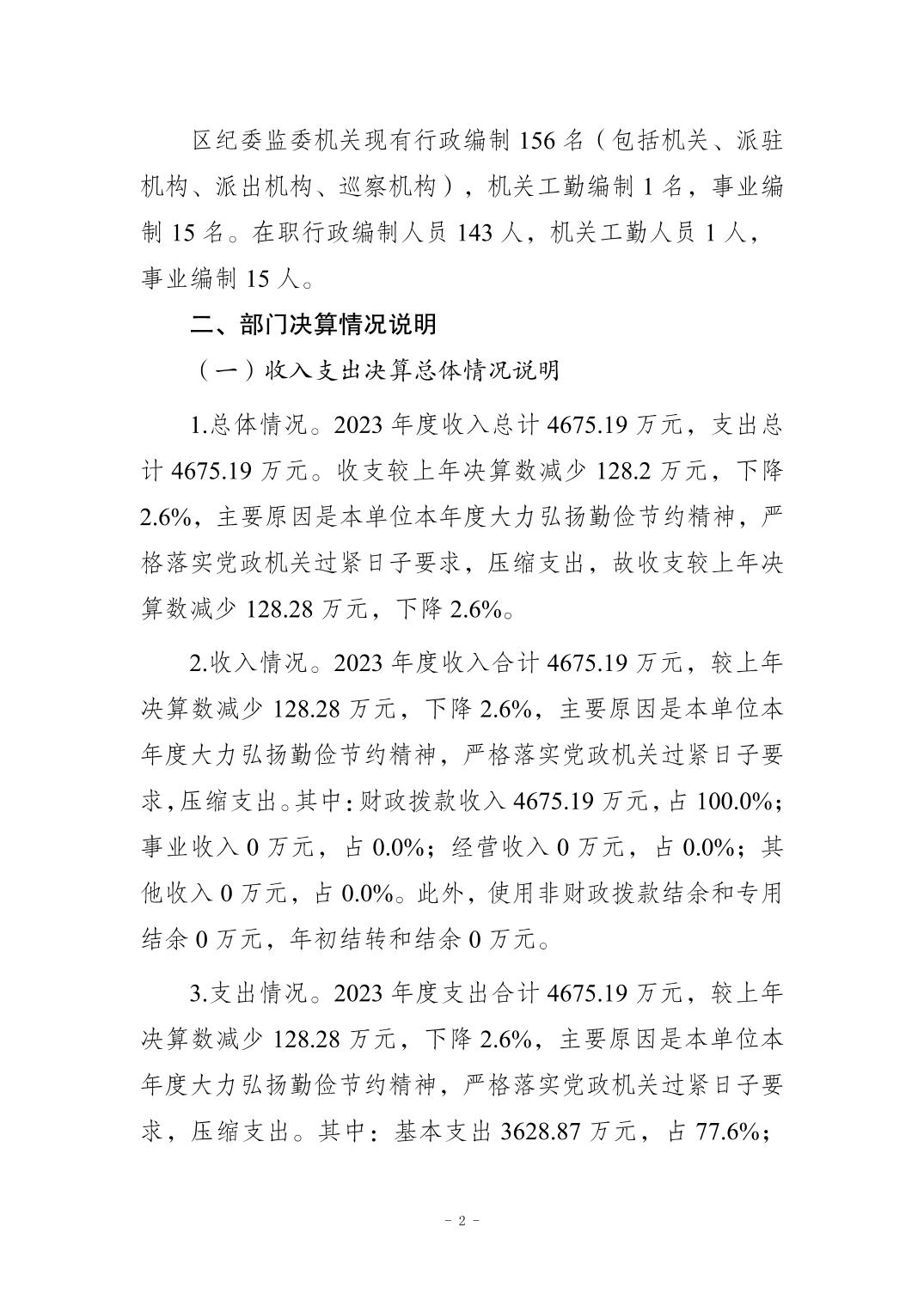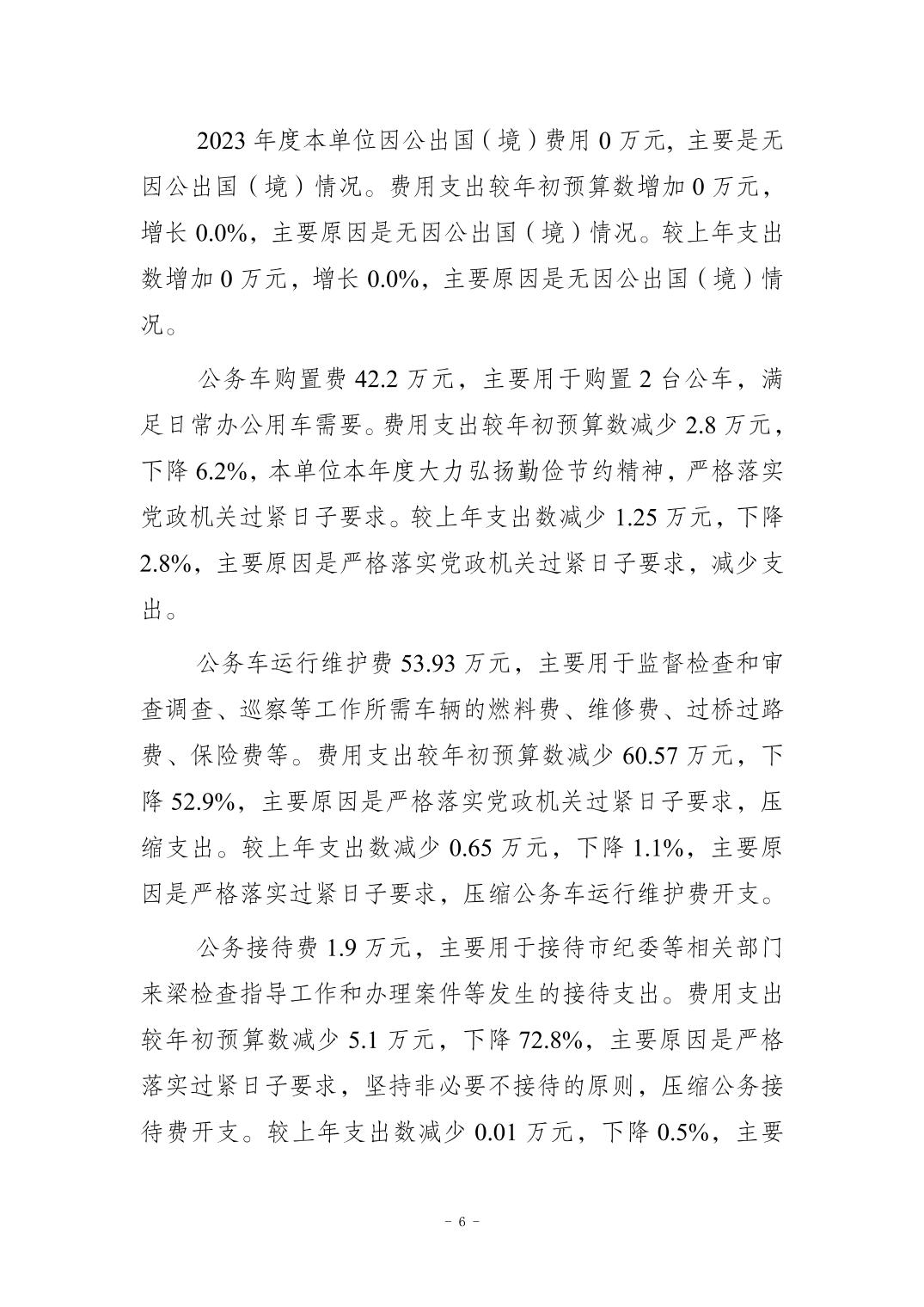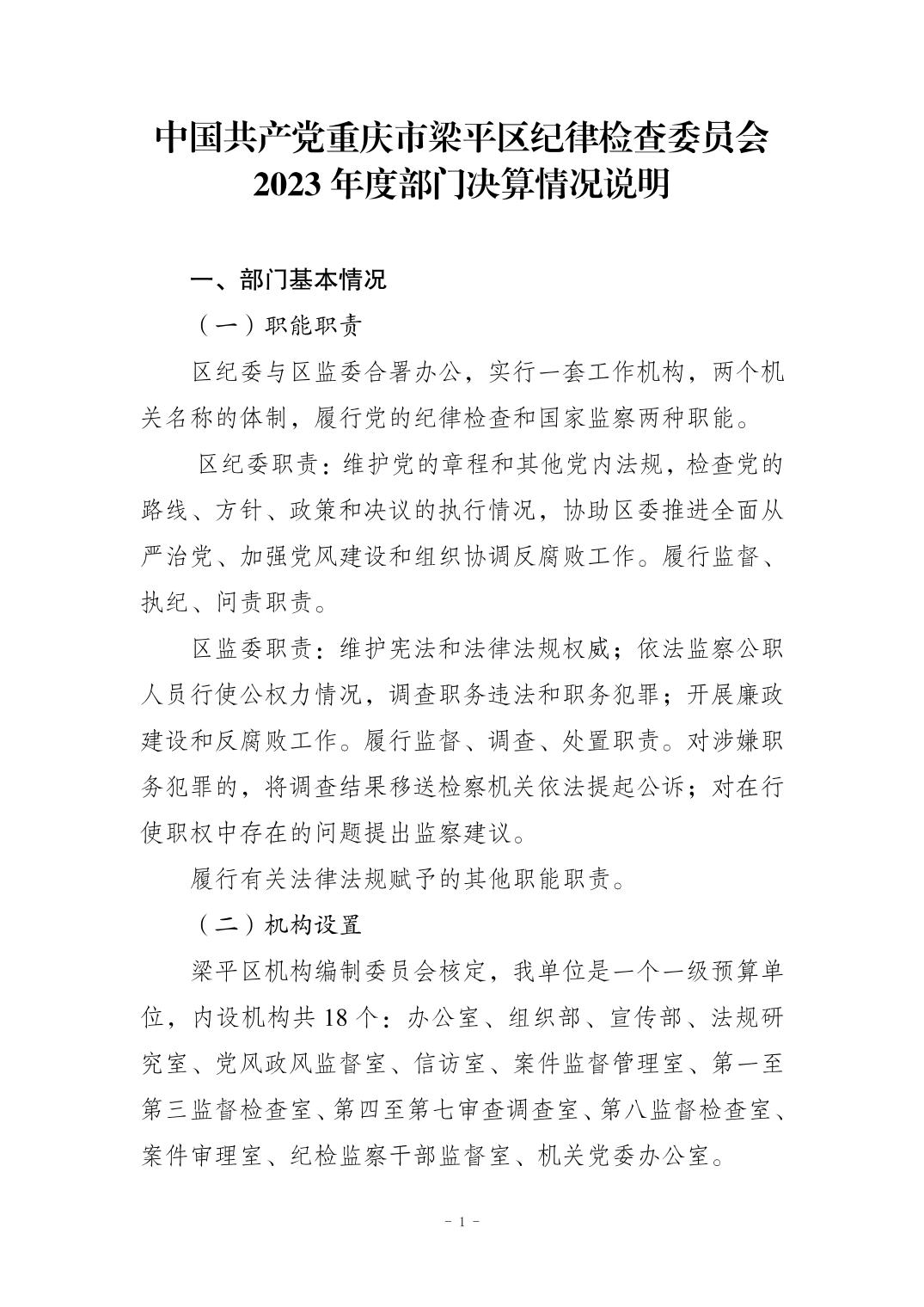 標(biāo)題 中國共產(chǎn)黨梁平區(qū)紀(jì)律檢查委員會(huì)2023年度決算公開說明
