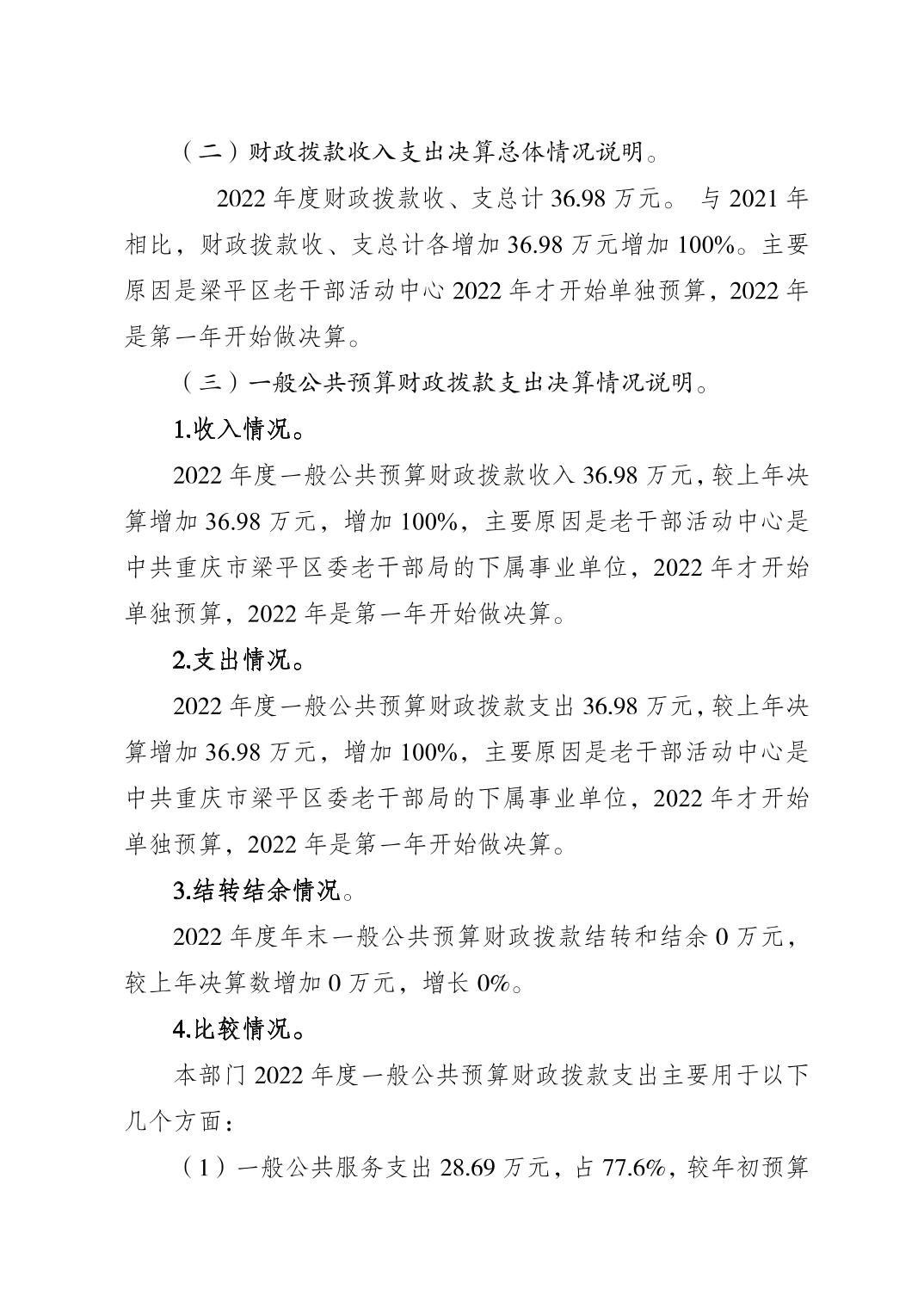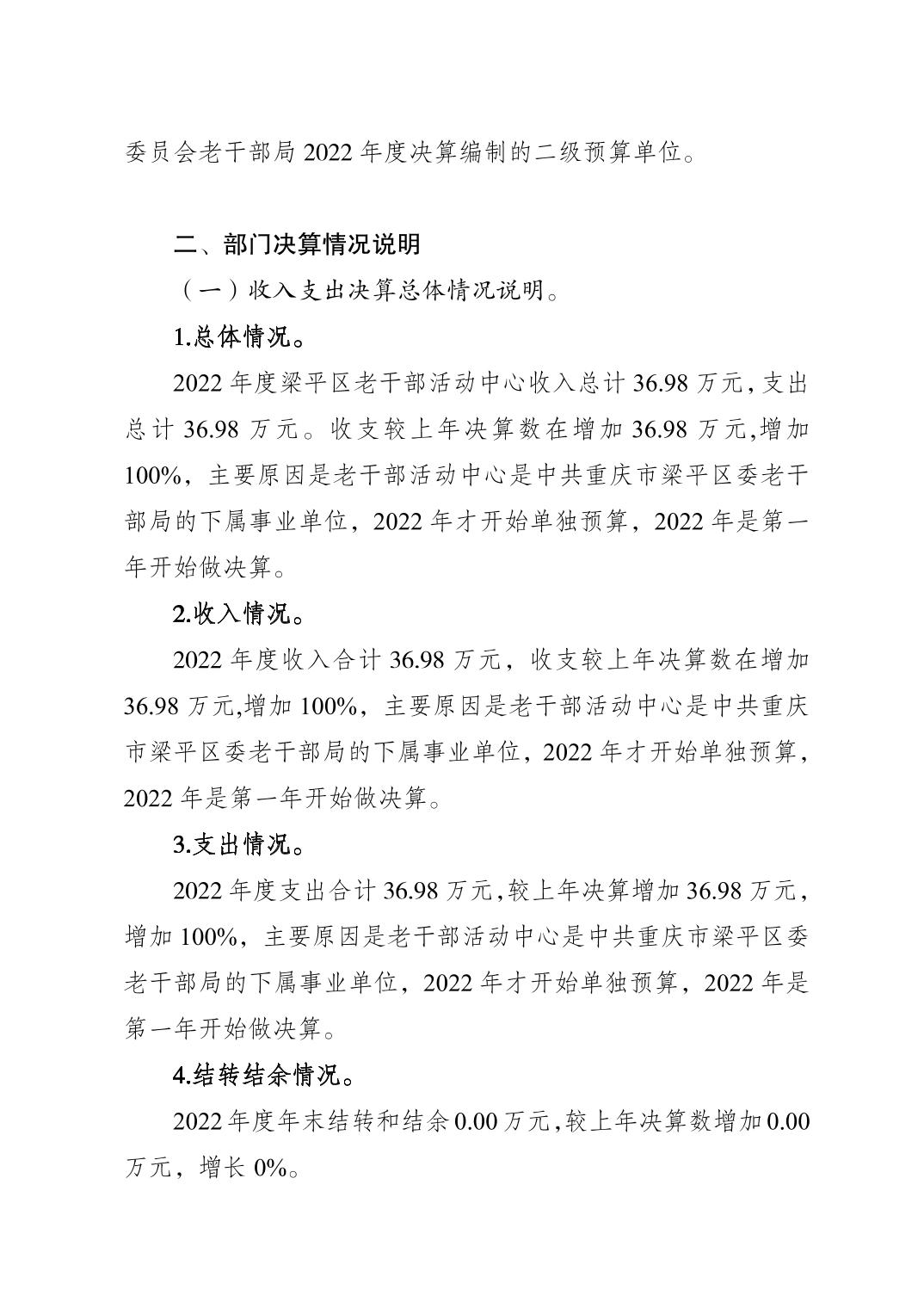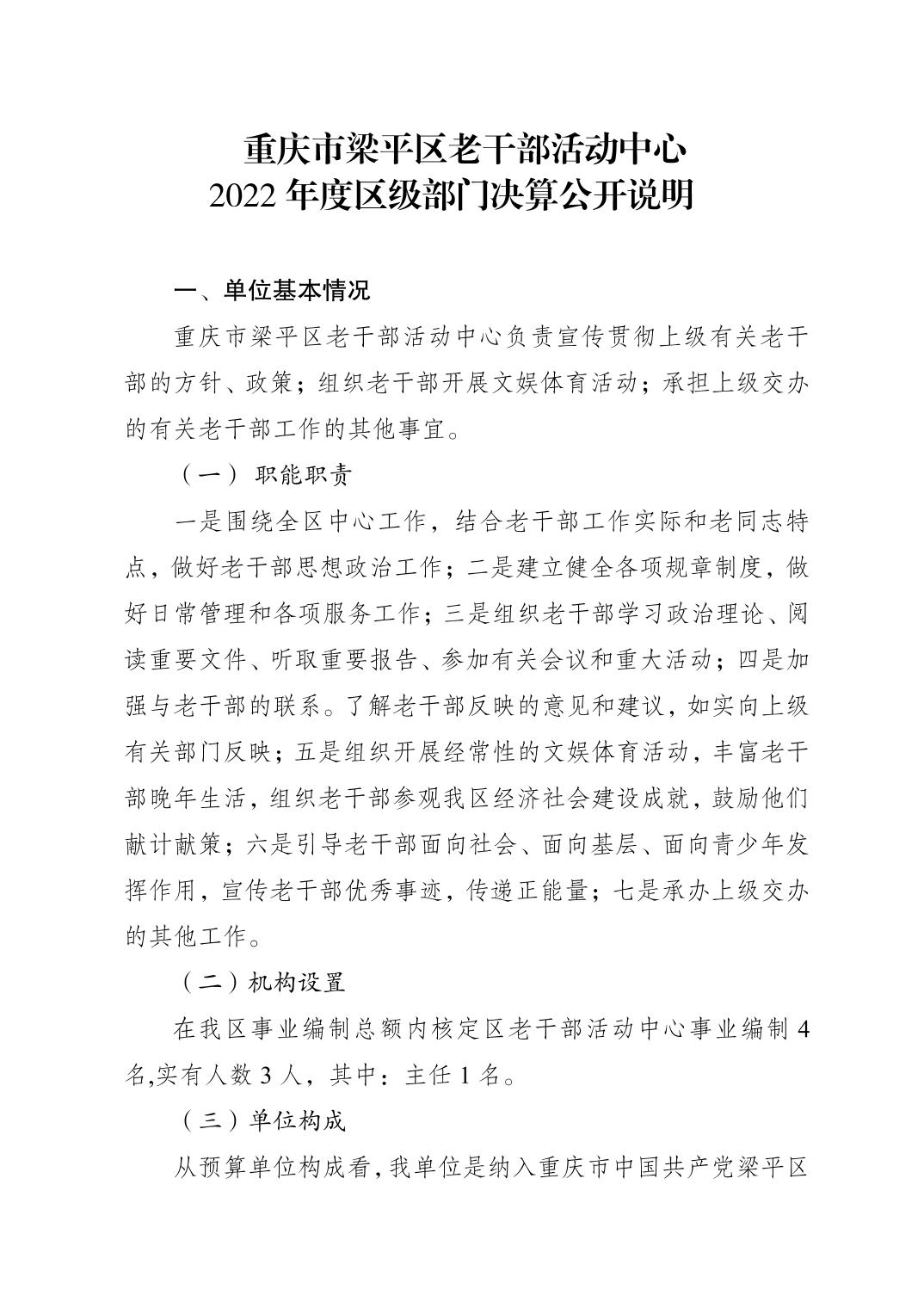 標題 重慶市梁平區老干部活動中心2022年度區級部門決算公開說明