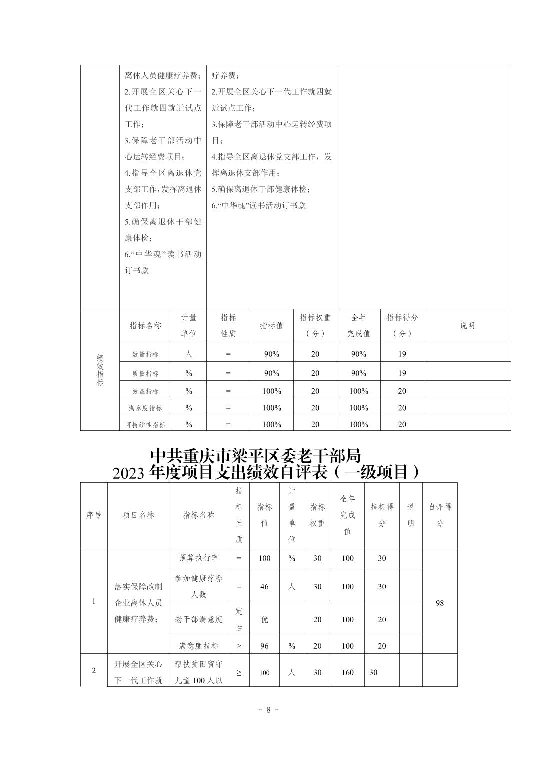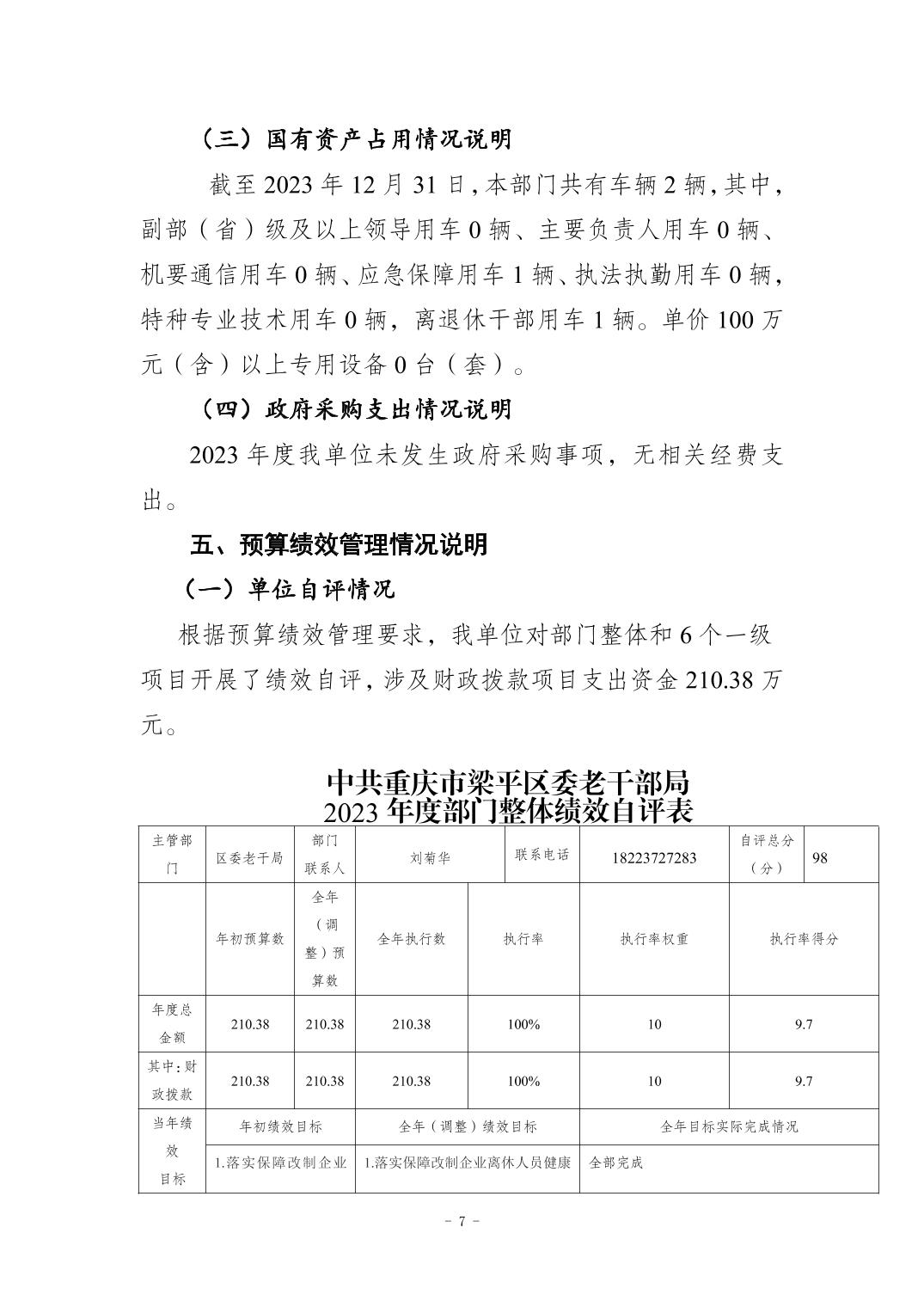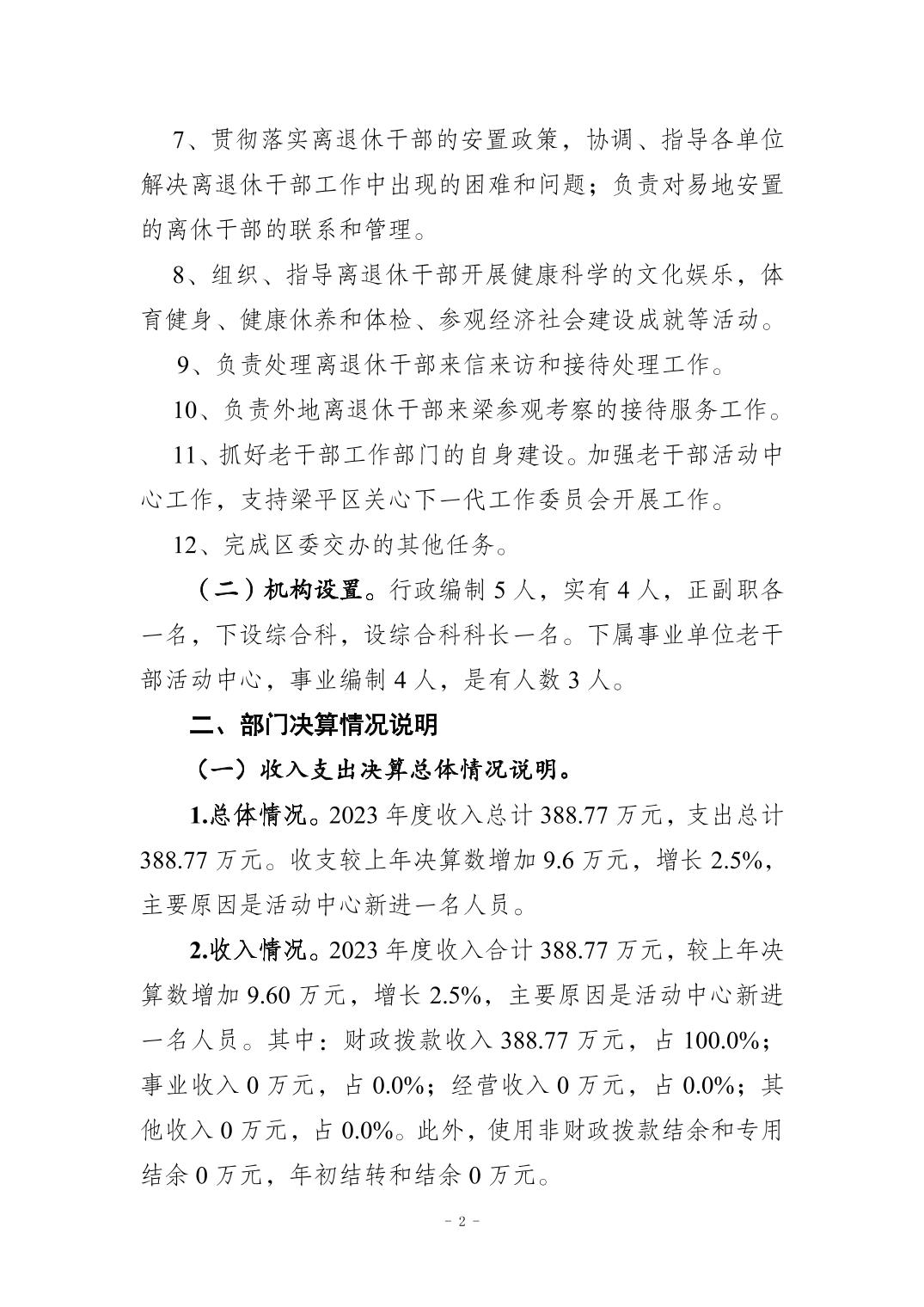 標題 中共重慶市梁平區委員會老干部局2023 年度決算公開說明