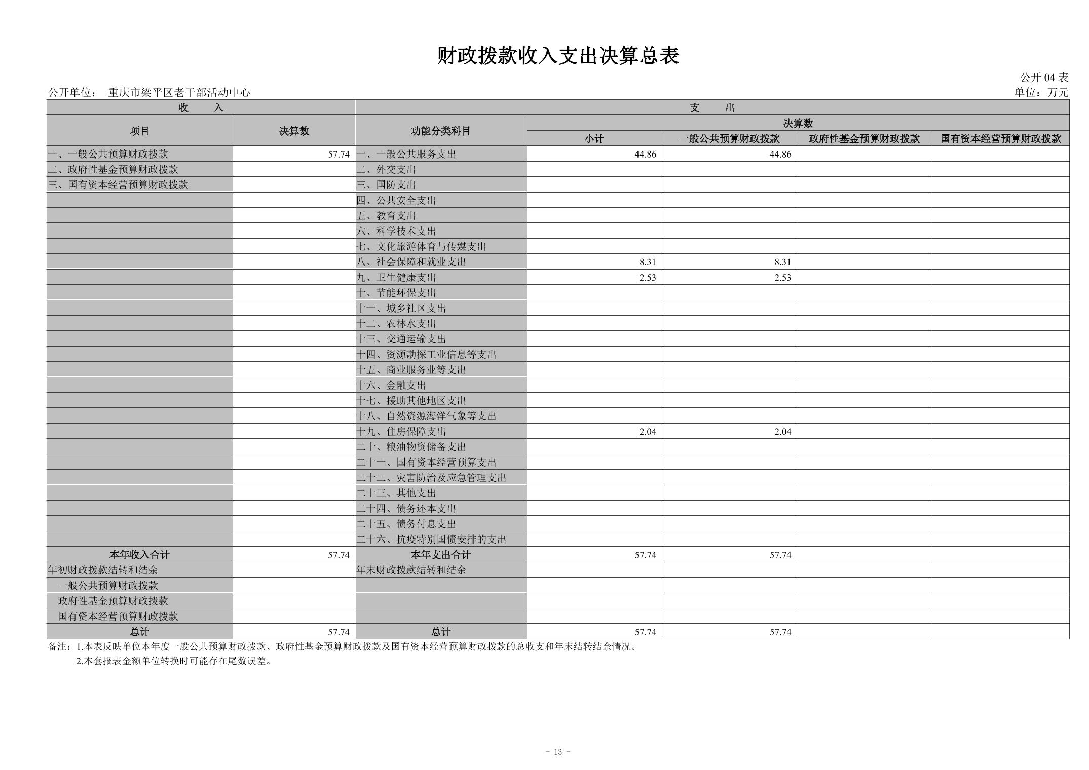 | 標題 | 重慶市梁平區老干部活動中心2023 年度決算公開說明 |