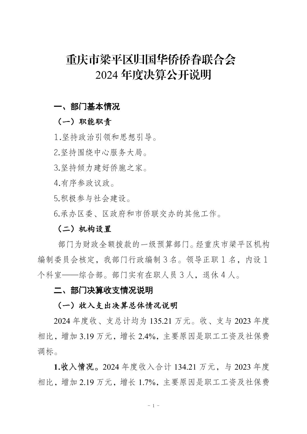 | 標(biāo)題 | 重慶市梁平區(qū)歸國(guó)華僑僑眷聯(lián)合會(huì) 2024 年度決算公開說明 | ||