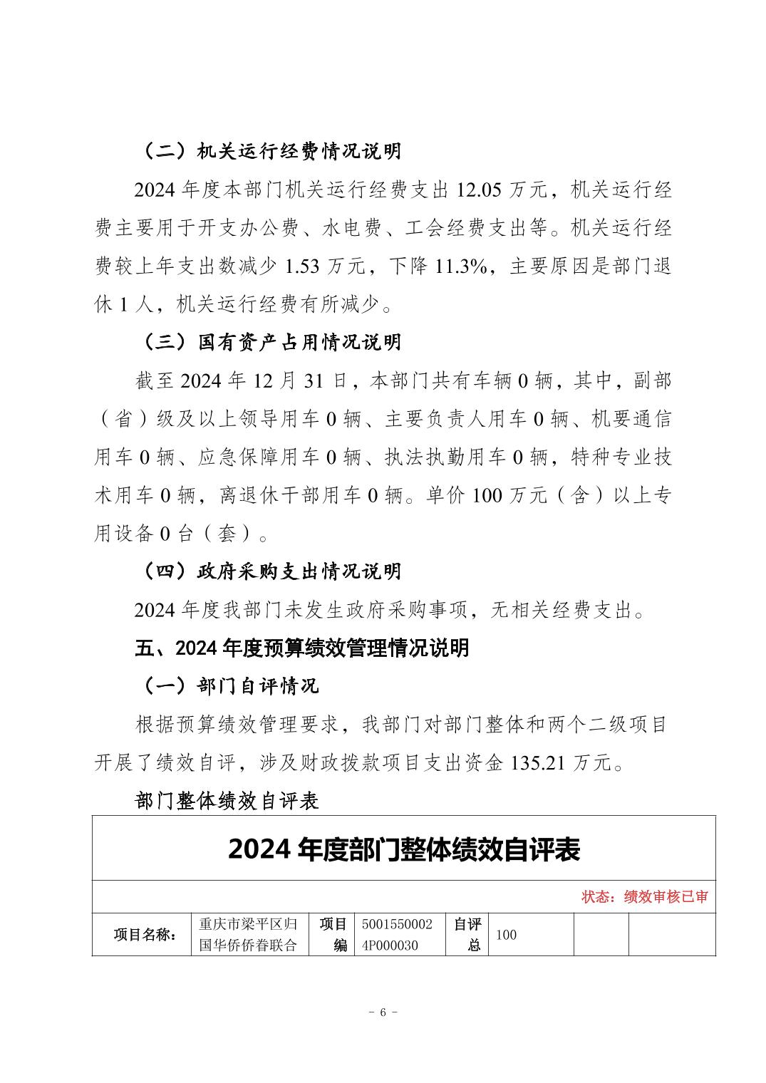| 標(biāo)題 | 重慶市梁平區(qū)歸國(guó)華僑僑眷聯(lián)合會(huì) 2024 年度決算公開說明 |