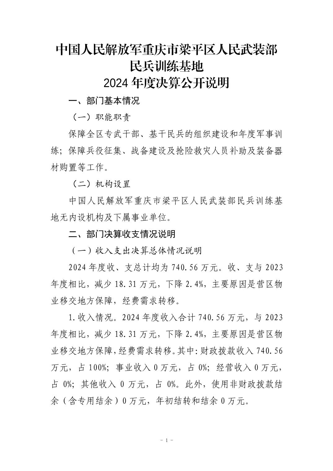 | 標題 | 中國人民解放軍重慶市梁平區(qū)人民武裝部 民兵訓(xùn)練基地 2024 年度決算公開說明 |