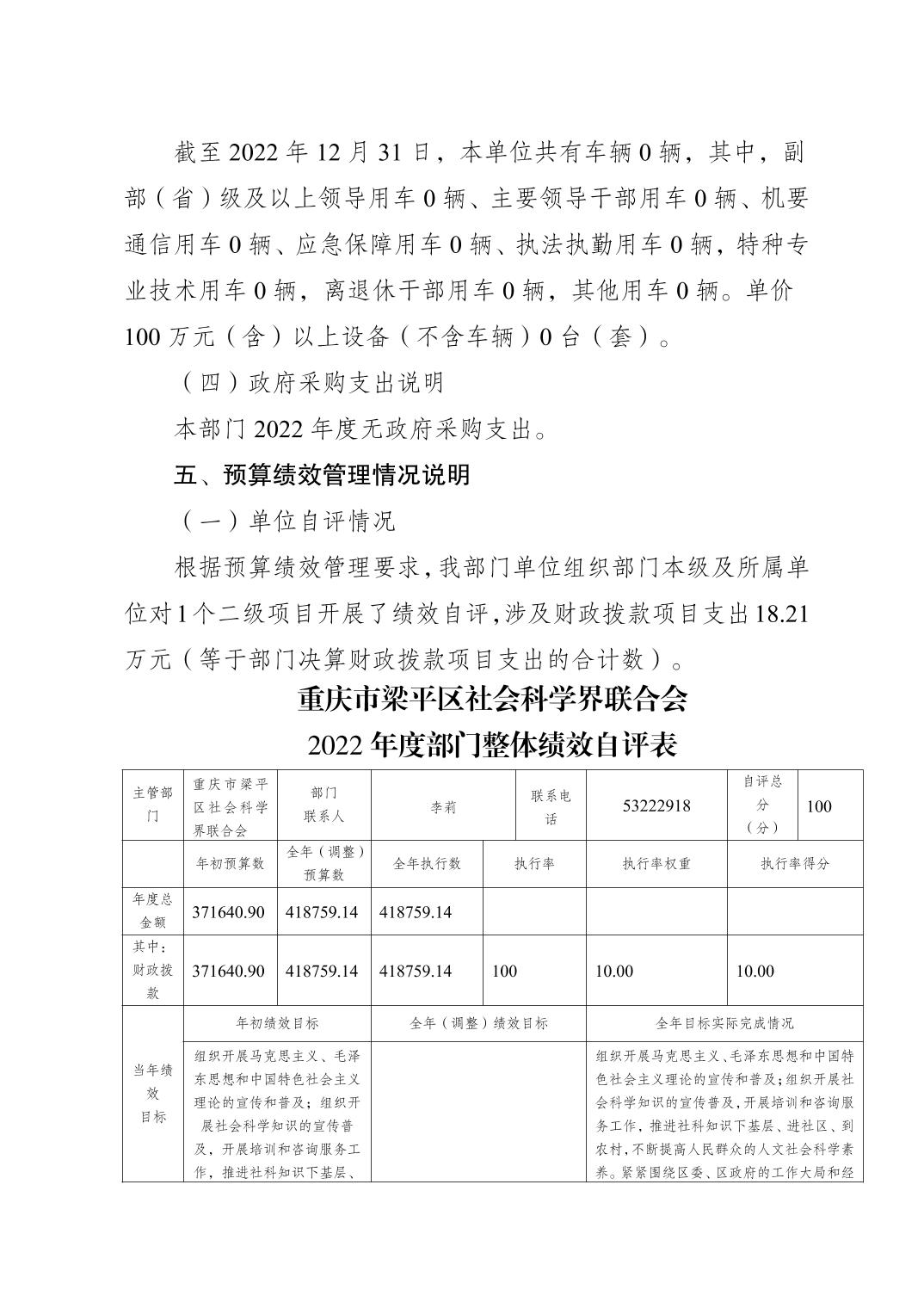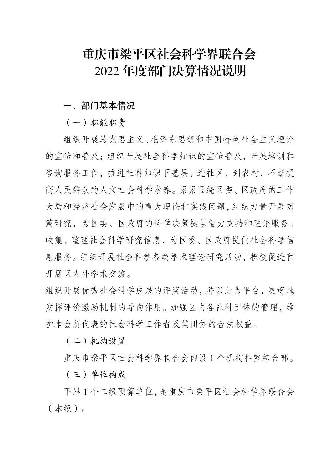 標題 重慶市梁平區社會科學界聯合會2022年度部門決算說明