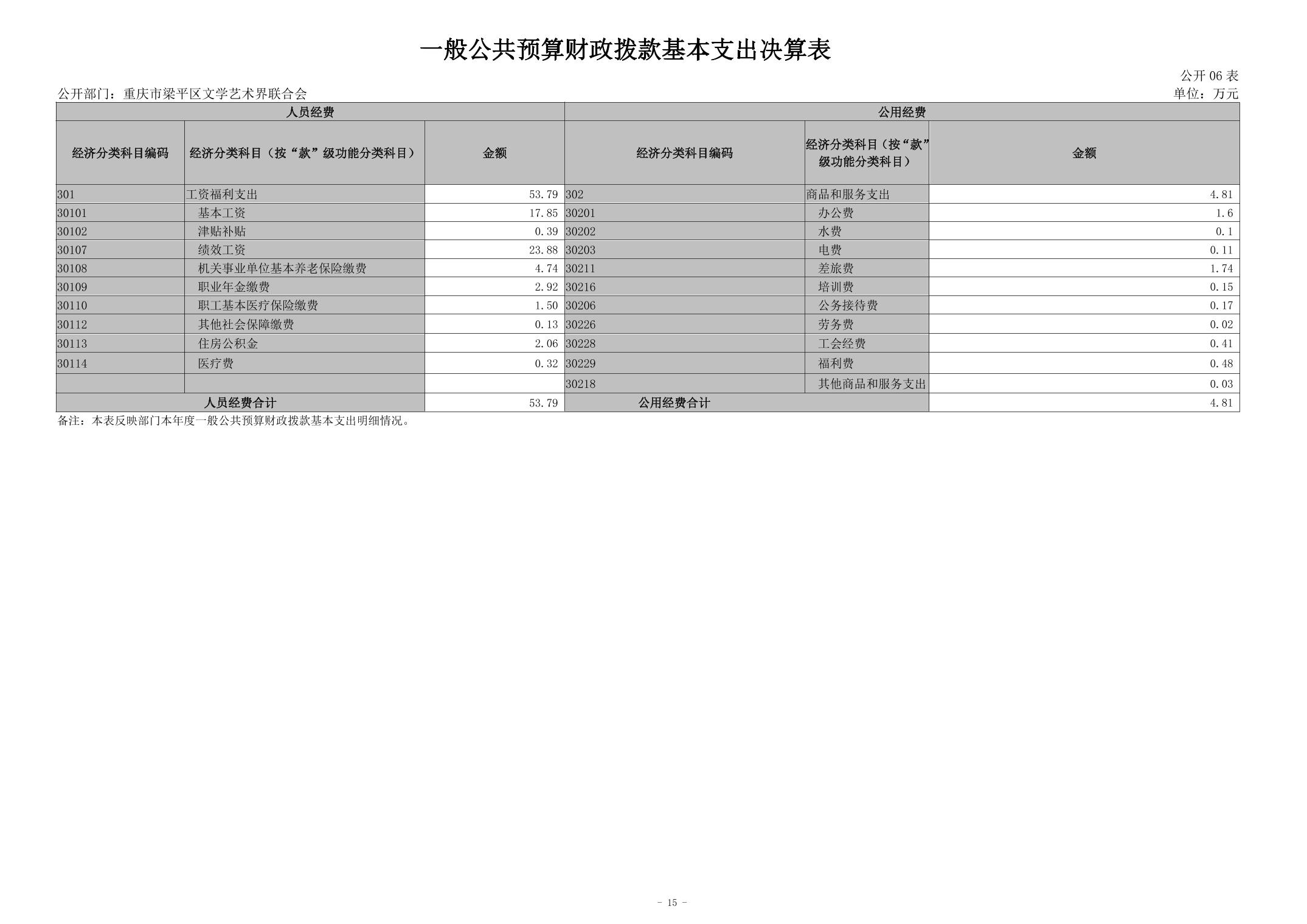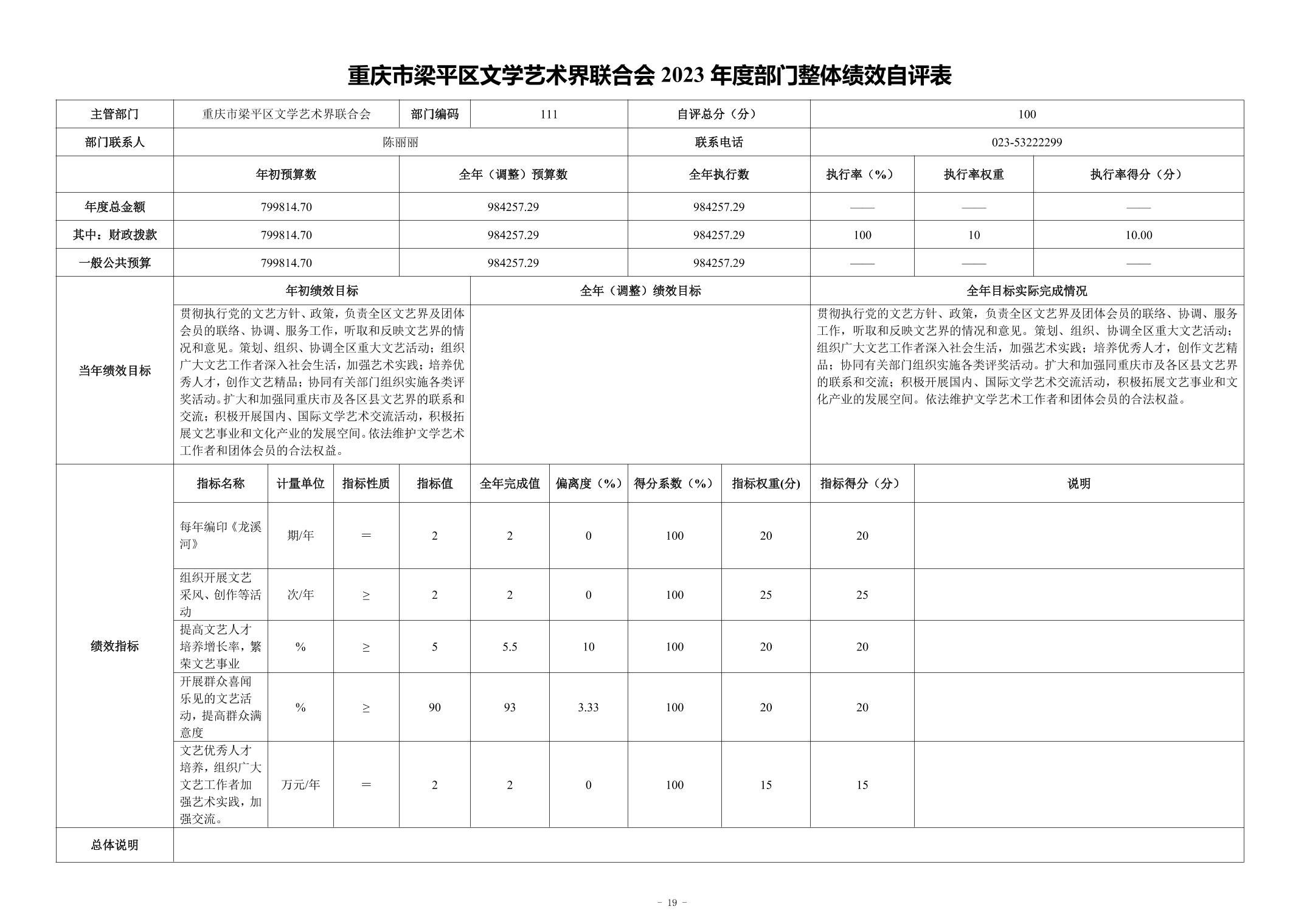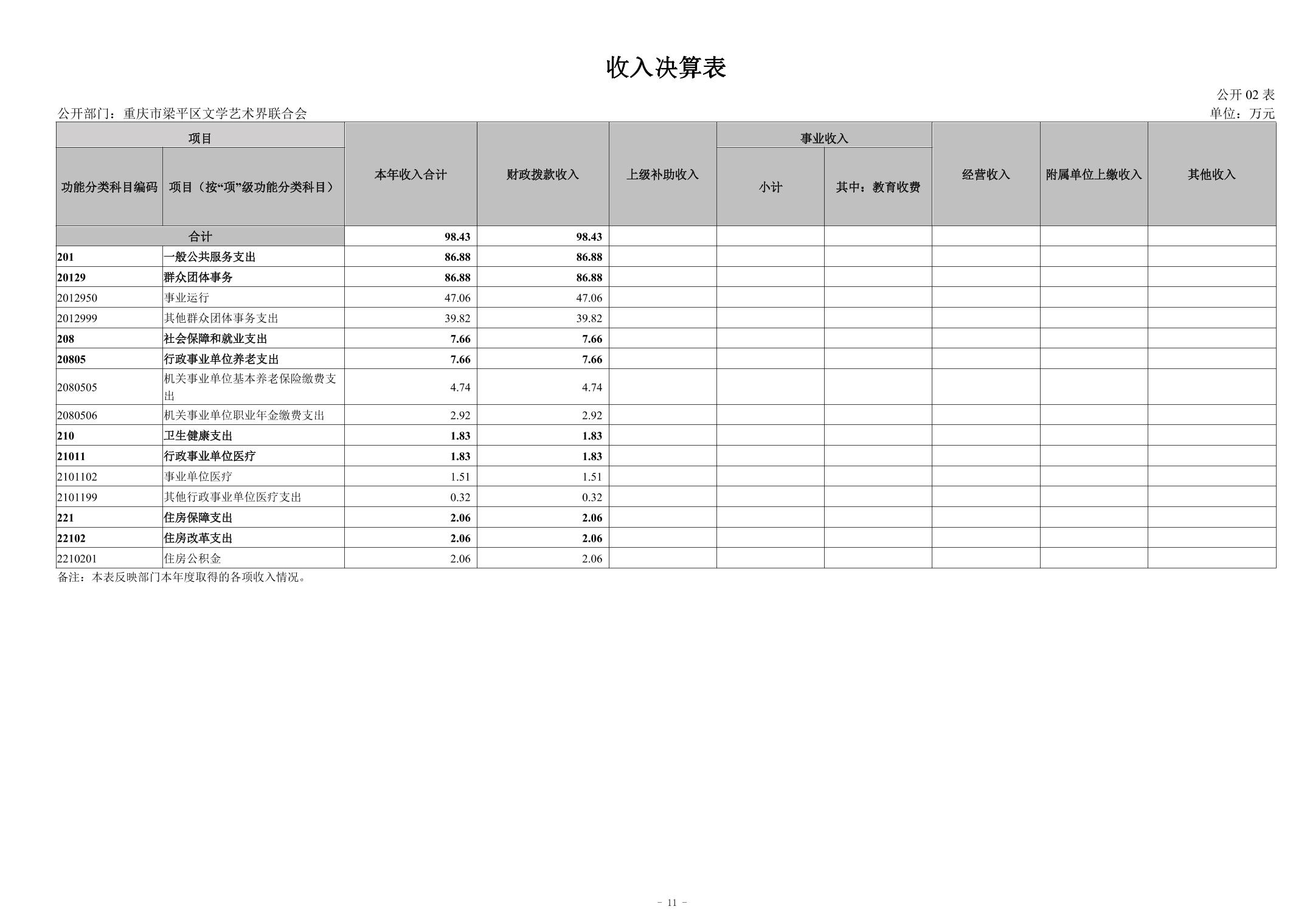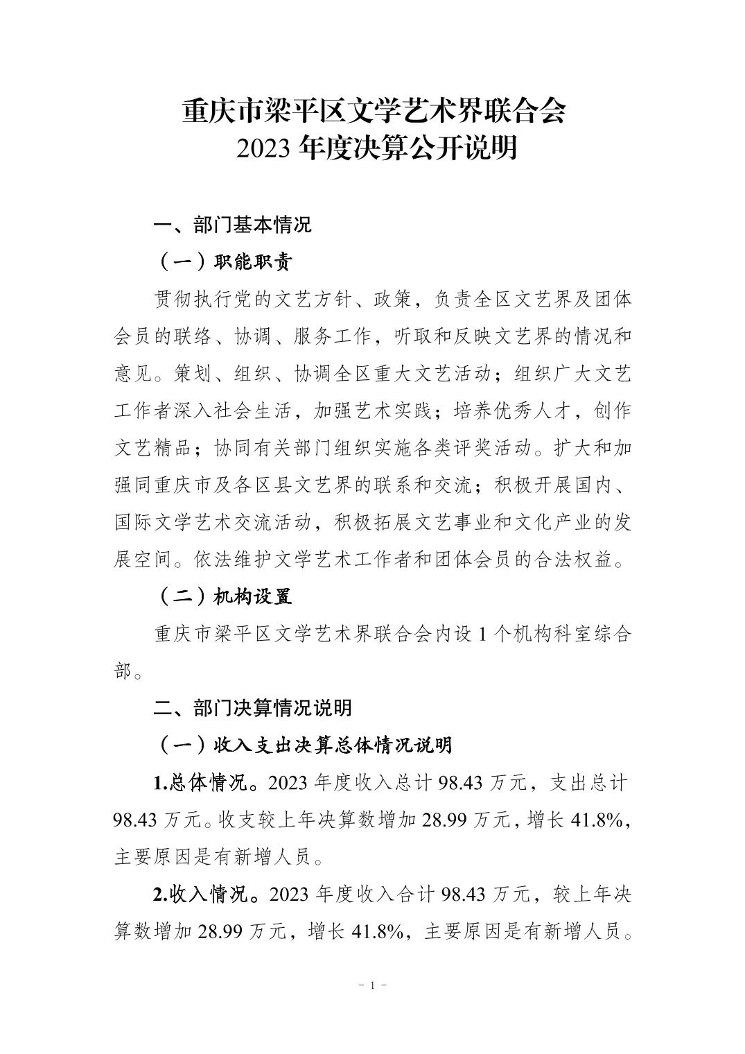 標題 重慶市梁平區文學藝術界聯合會2023年度決算公開說明(部門)