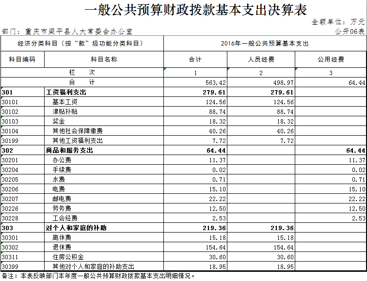 (九)基本支出:指為保障機構正常運轉、完成日常工作任務而發生的人員經費和公用經費。其中:人員經費指政府收支分類經濟科目中的“工資福利支出”和“對個人和家庭的補助”;公用經費指政府收支分類經濟科目中除“工資福利支出”和“對個人和家庭的補助”外的其他支出。