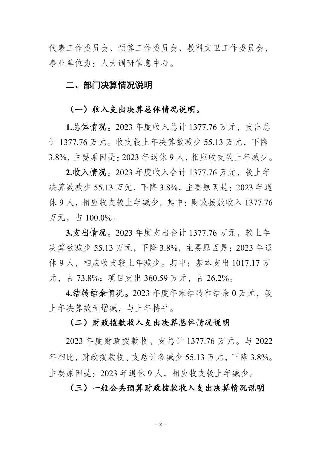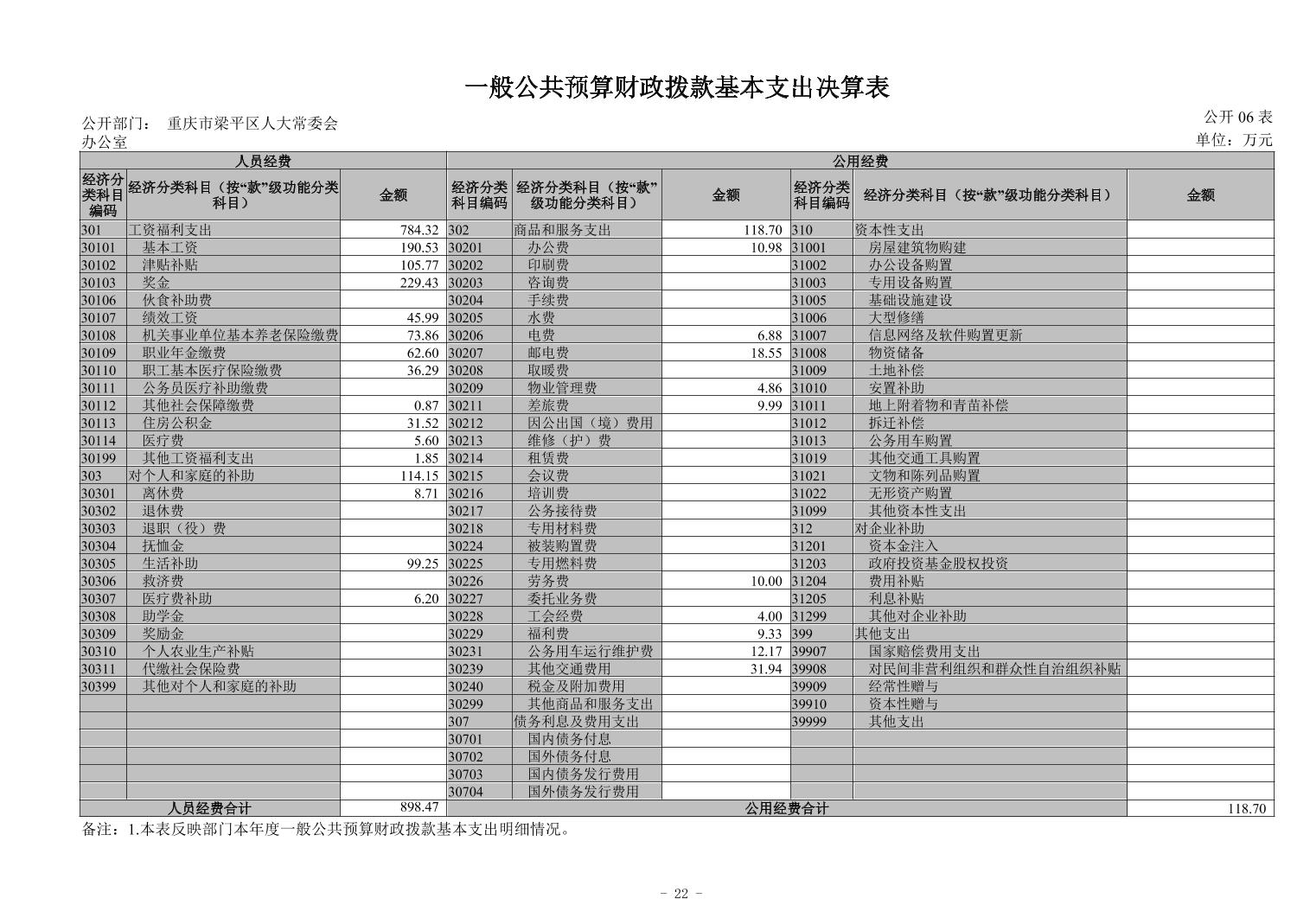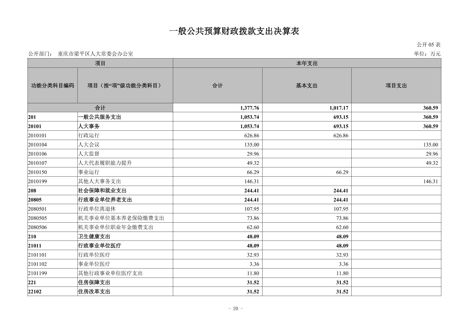 重慶市梁平區人大常委會辦公室2023年度決算公開說明 |