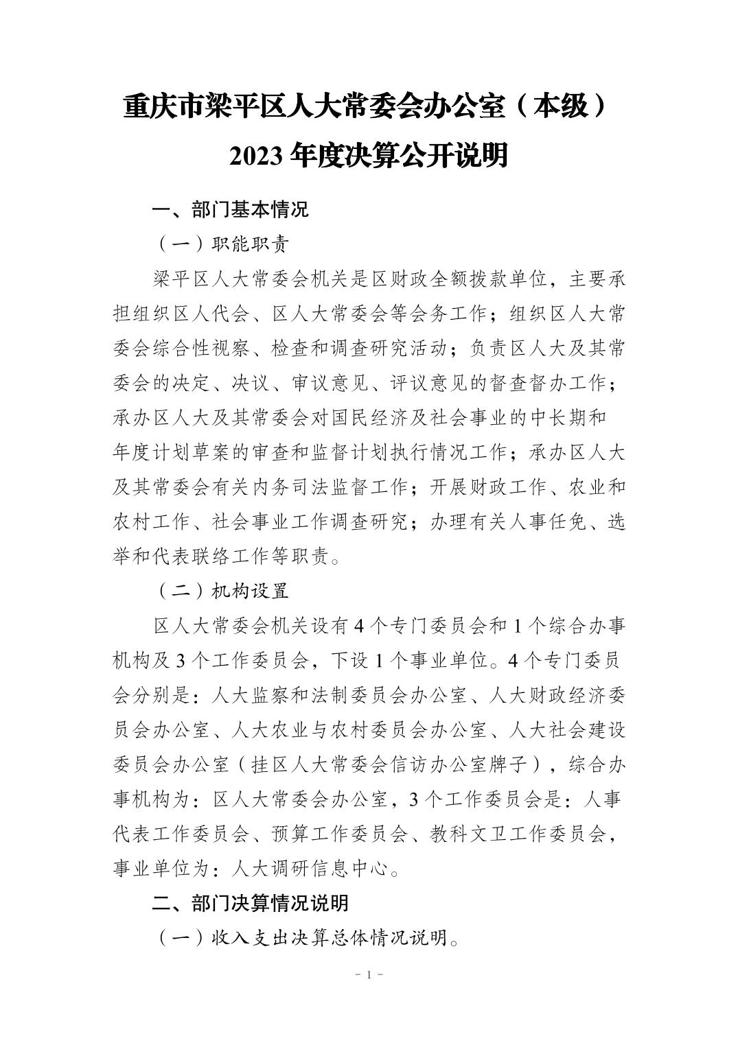 | 標題 | 重慶市梁平區人大常委會辦公室(本級)2023年度決算公開說明 |
