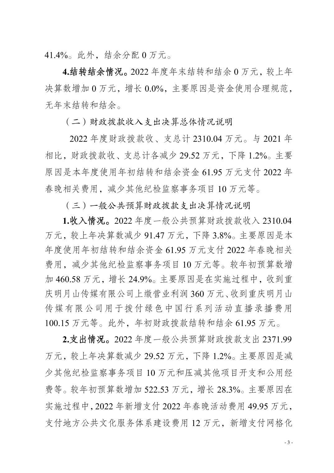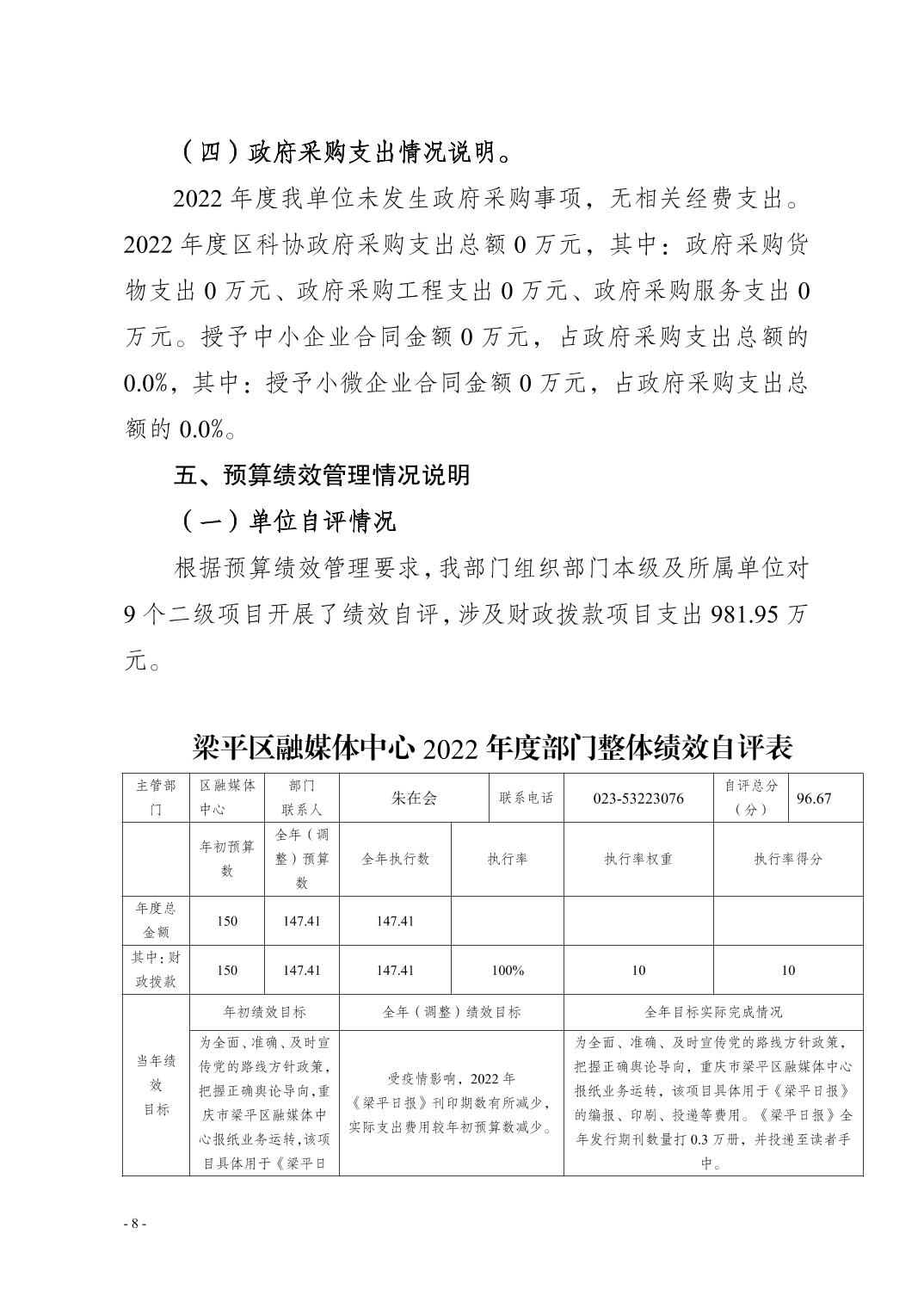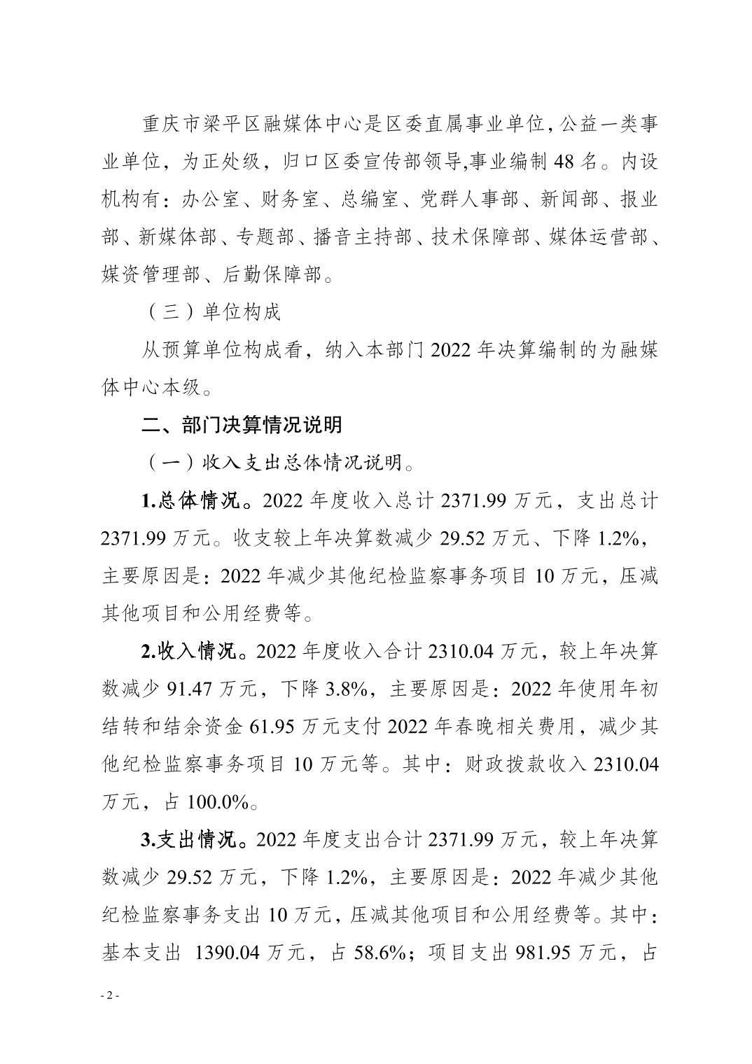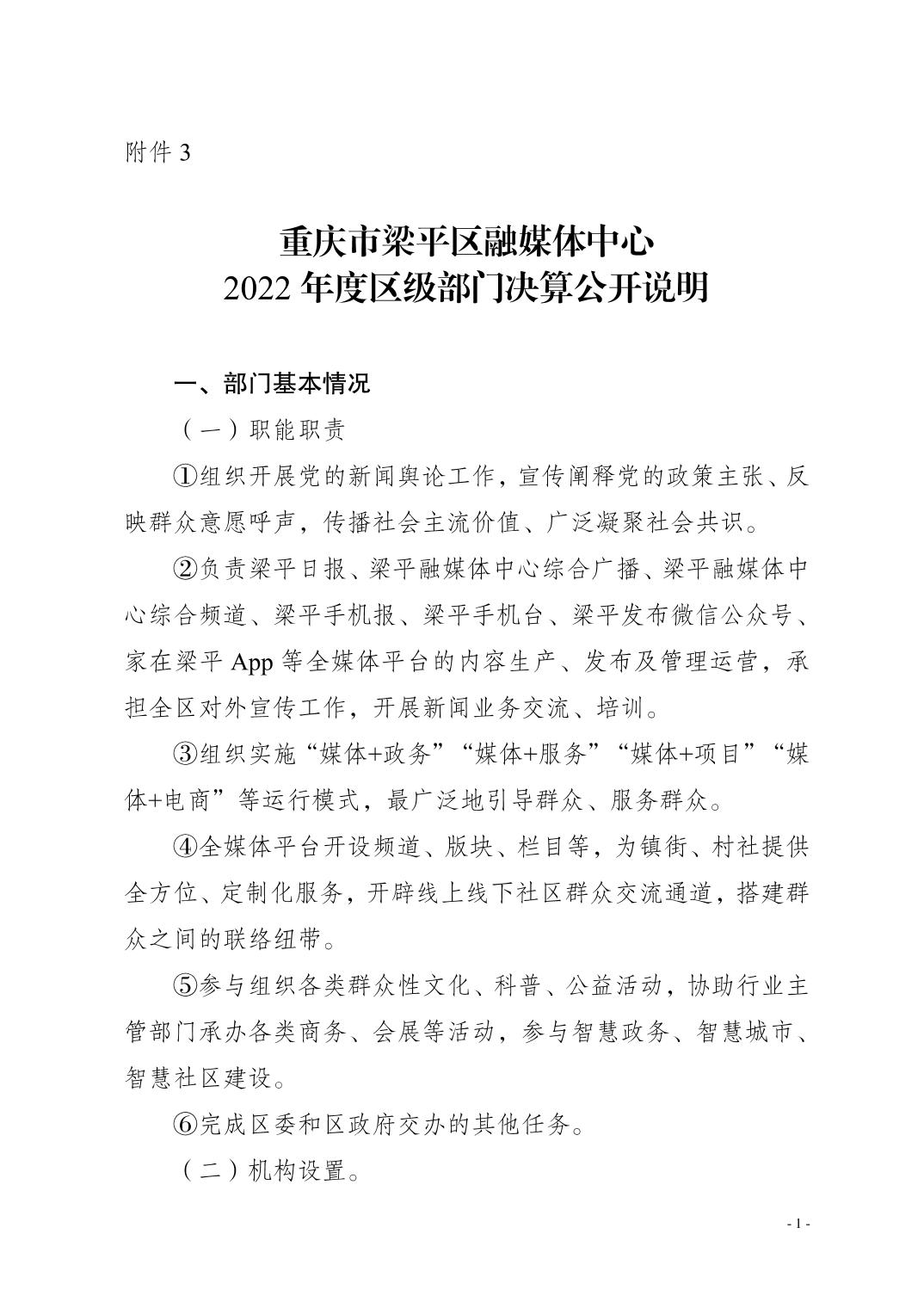 | 標題 | 重慶市梁平區融媒體中心2022年度區級部門決算公開說明 |