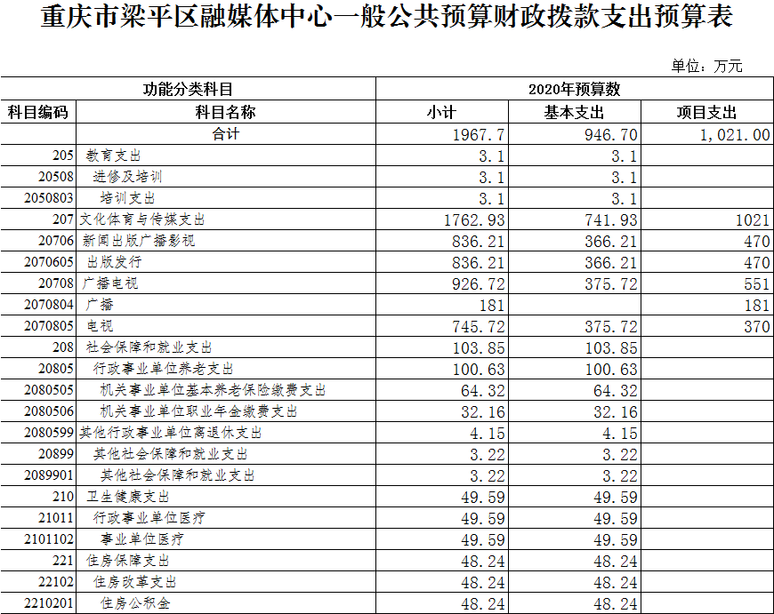 標(biāo)題 重慶市梁平區(qū)融媒體中心2020年部門預(yù)算情況說明