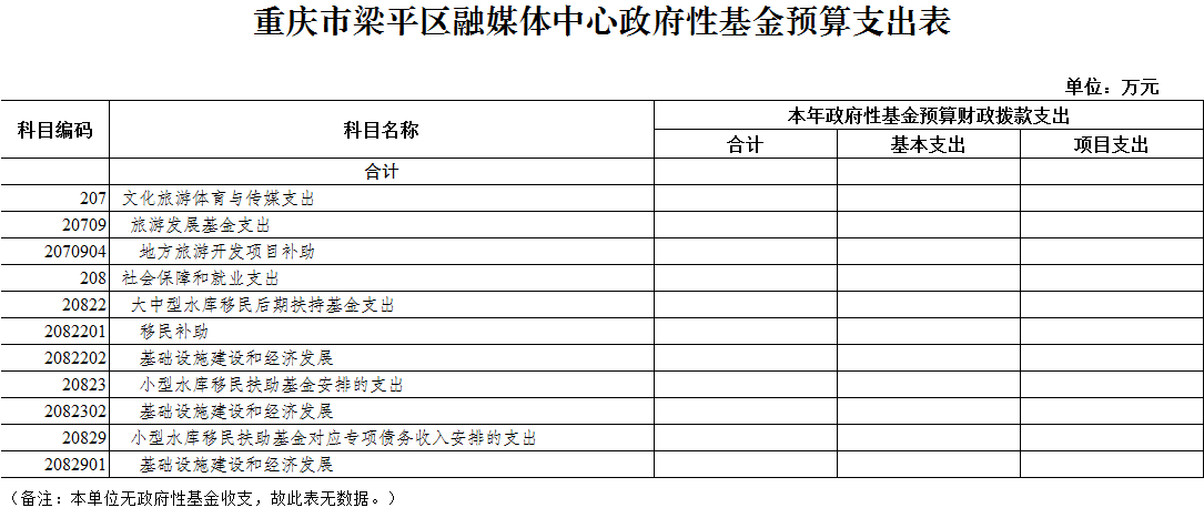 重慶市梁平區(qū)融媒體中心2020年未使用政府性基金預(yù)算撥款安排的支出。