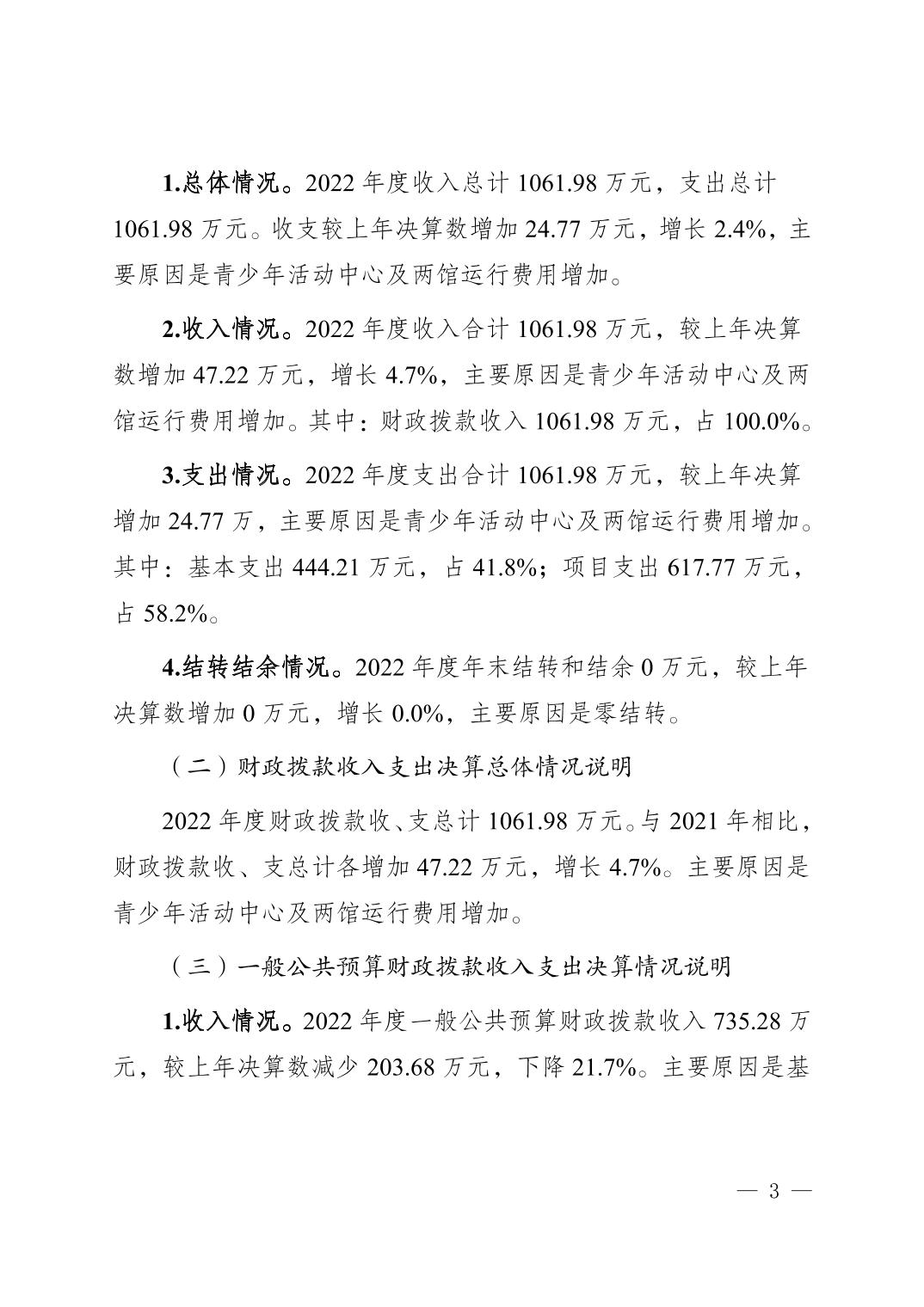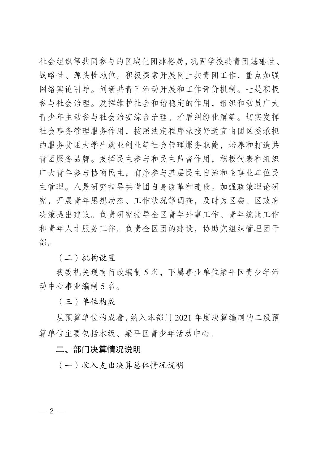 | 標題 | 中國共產主義青年團梁平區委員會 2022年度決算情況說明 |