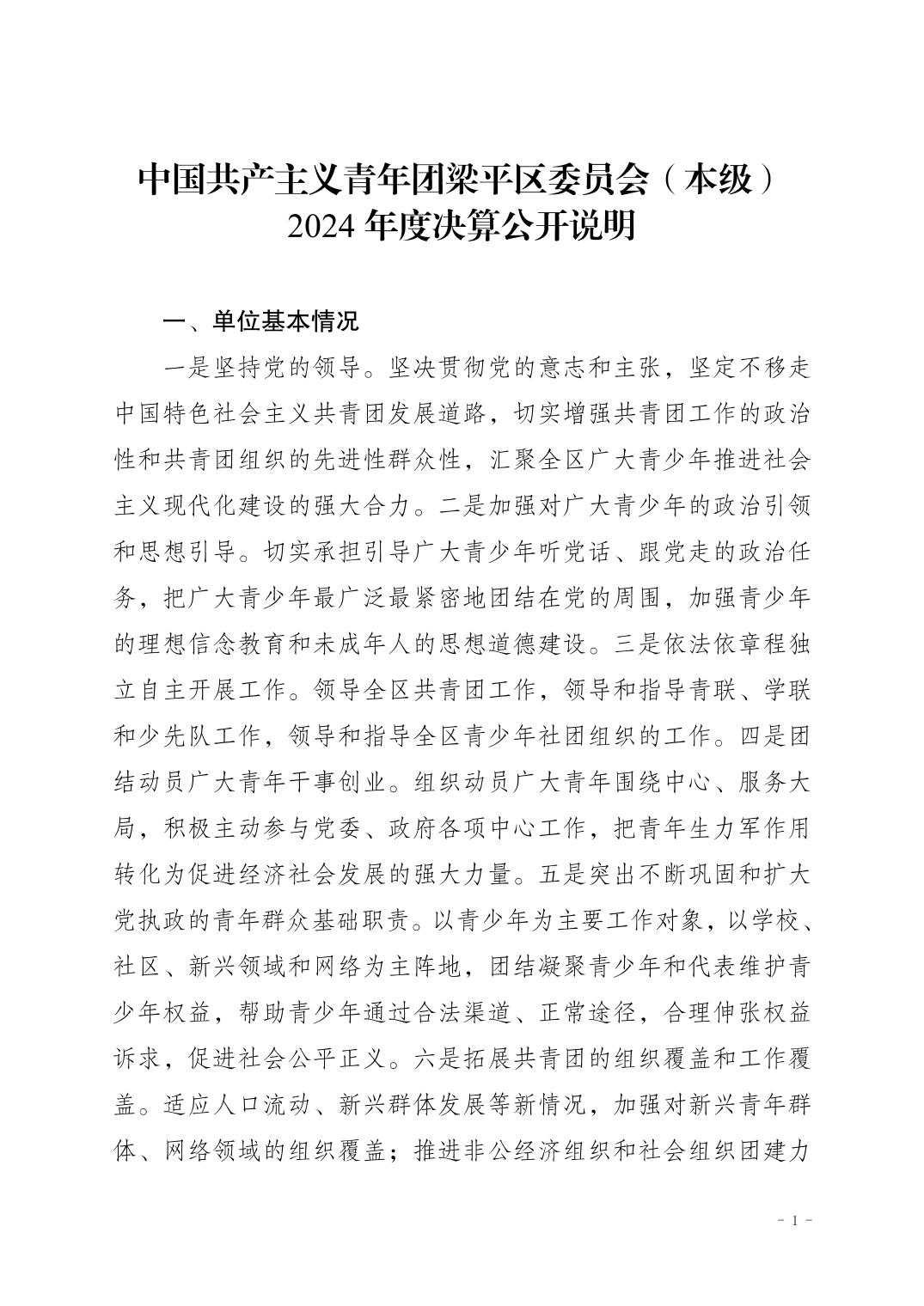 | 標題 | 中國共產主義青年團梁平區委員會(本級) 2024 年度決算公開說明 |