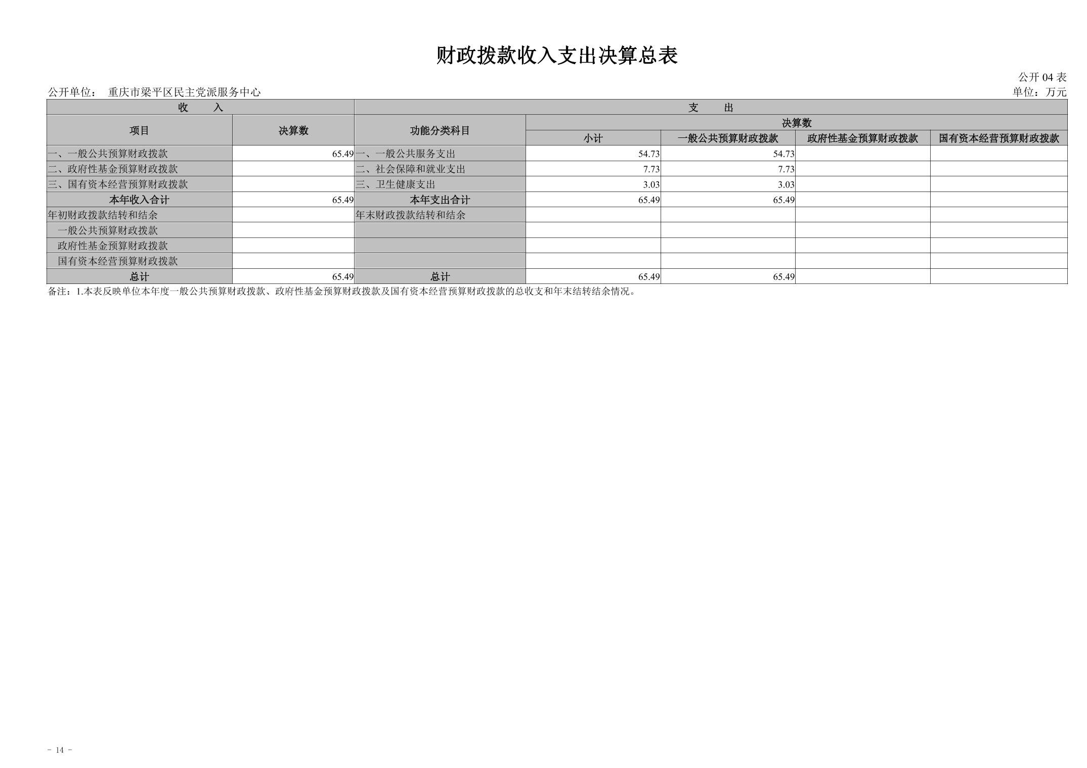 | 標題 | 中國共產黨梁平區民主黨派服務中心2023年度決算公開說明 |