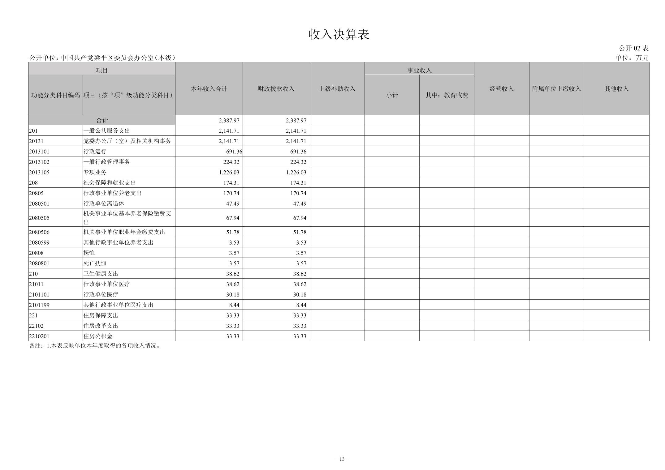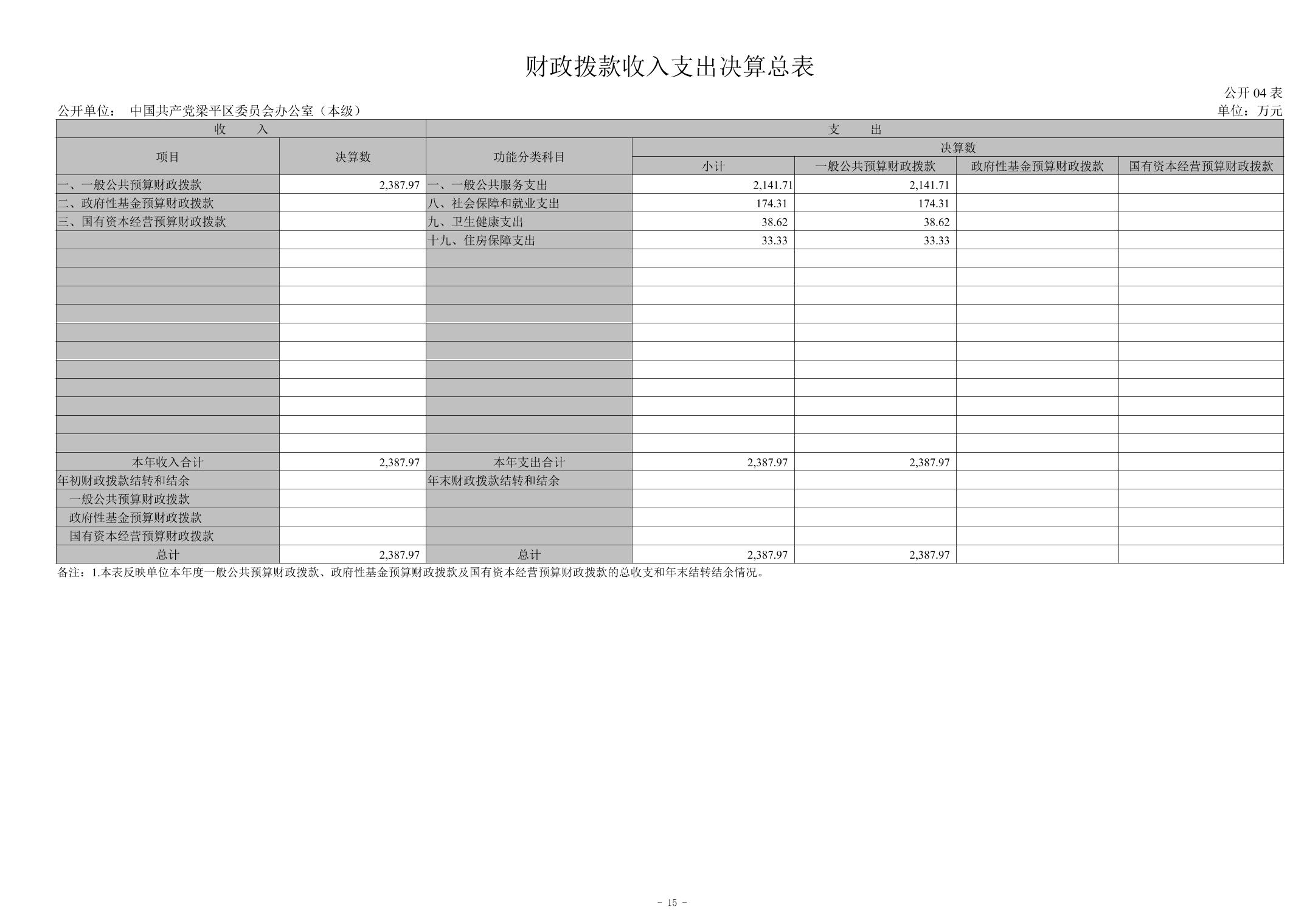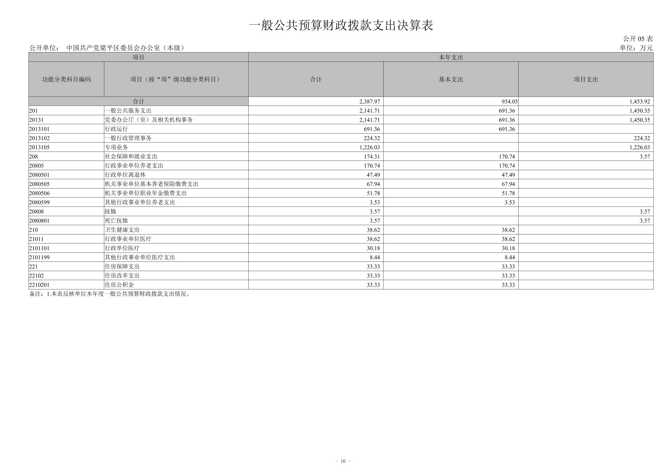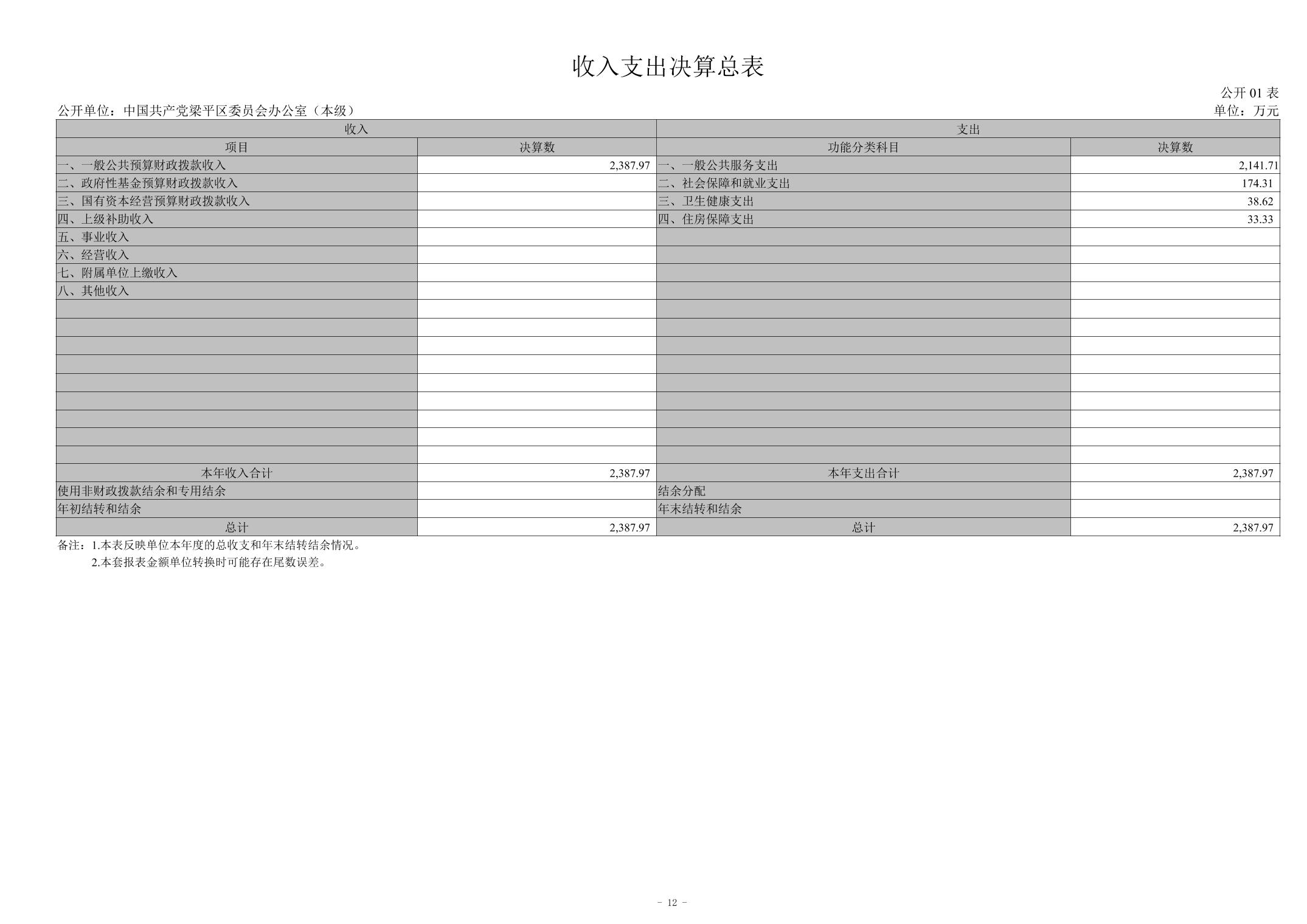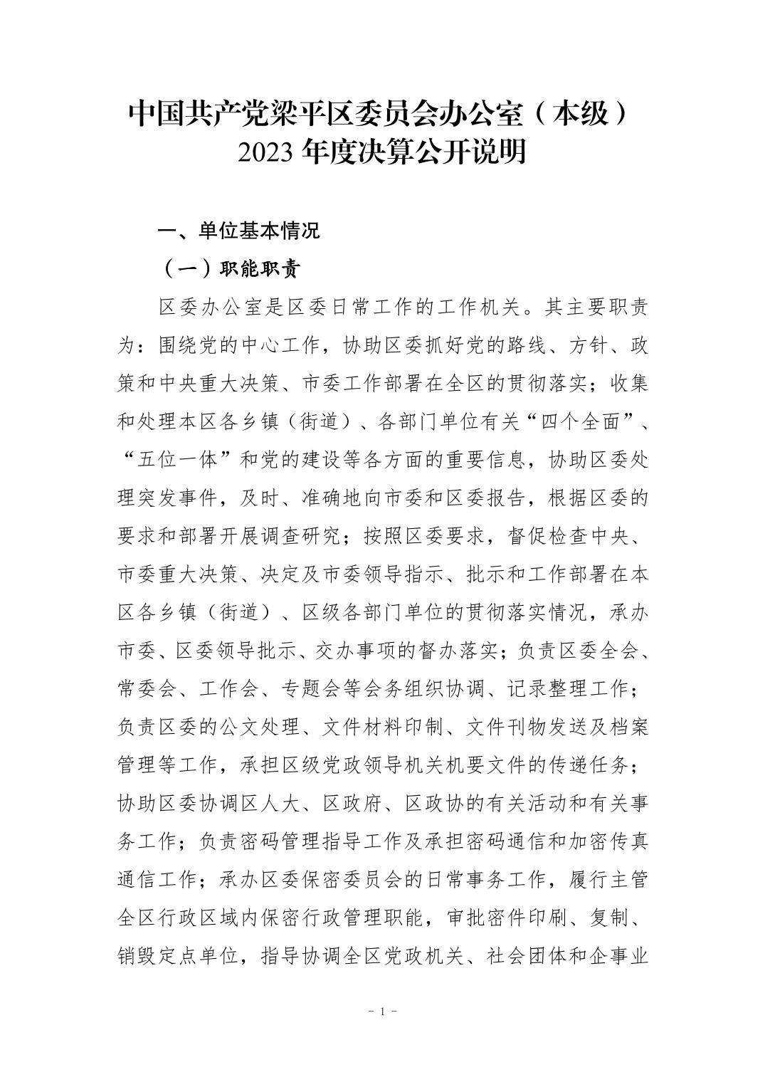 | 標題 | 中國共產黨梁平區委員會辦公室(本級)2023年度決算公開說明 |