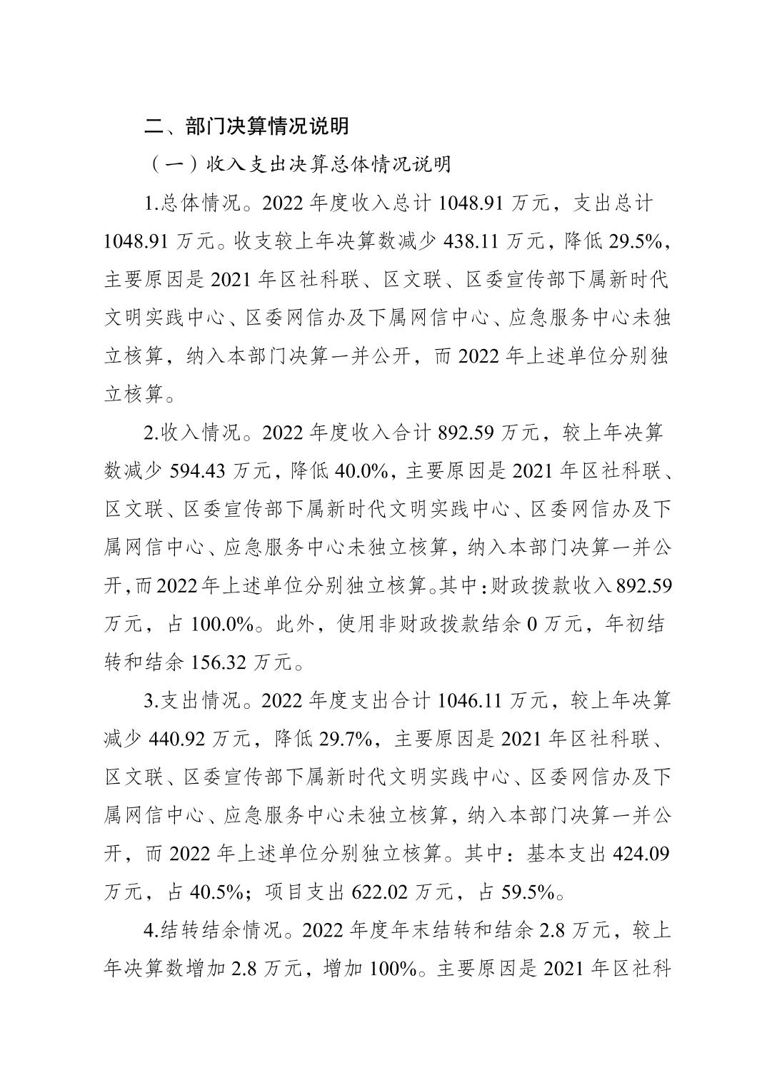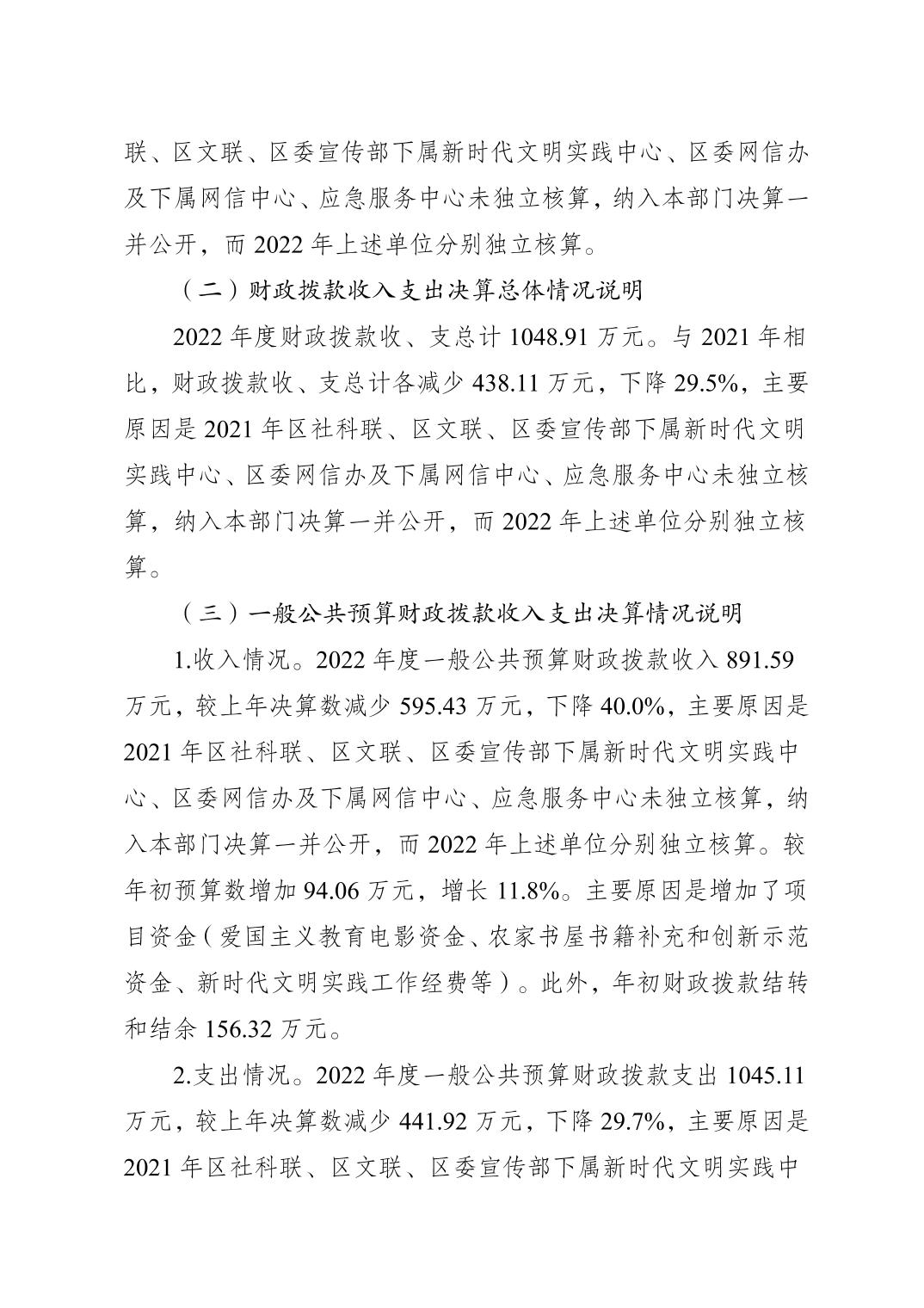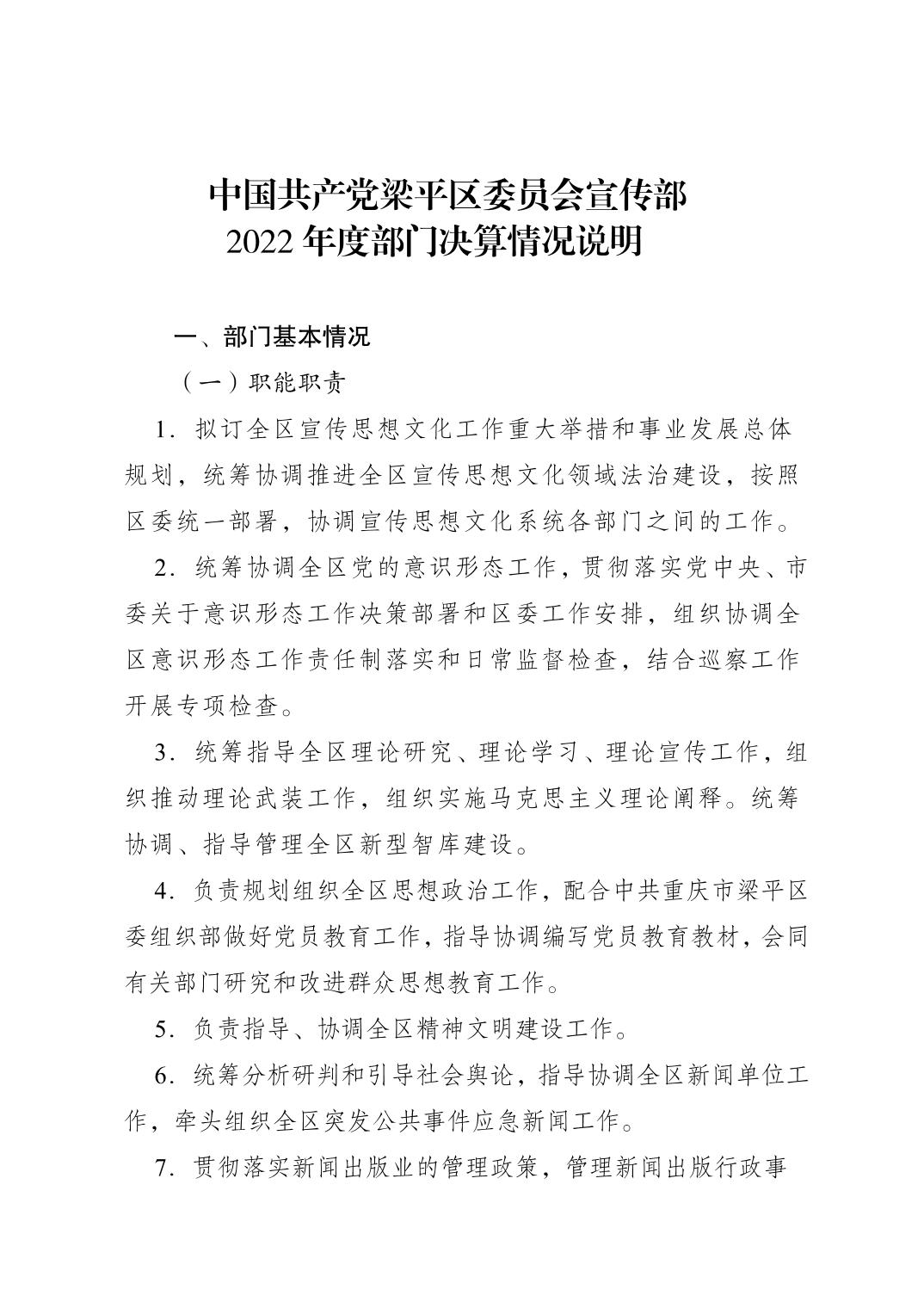 | 標題 | 中國共產黨梁平區委員會宣傳部2022年度部門決算情況說明 |